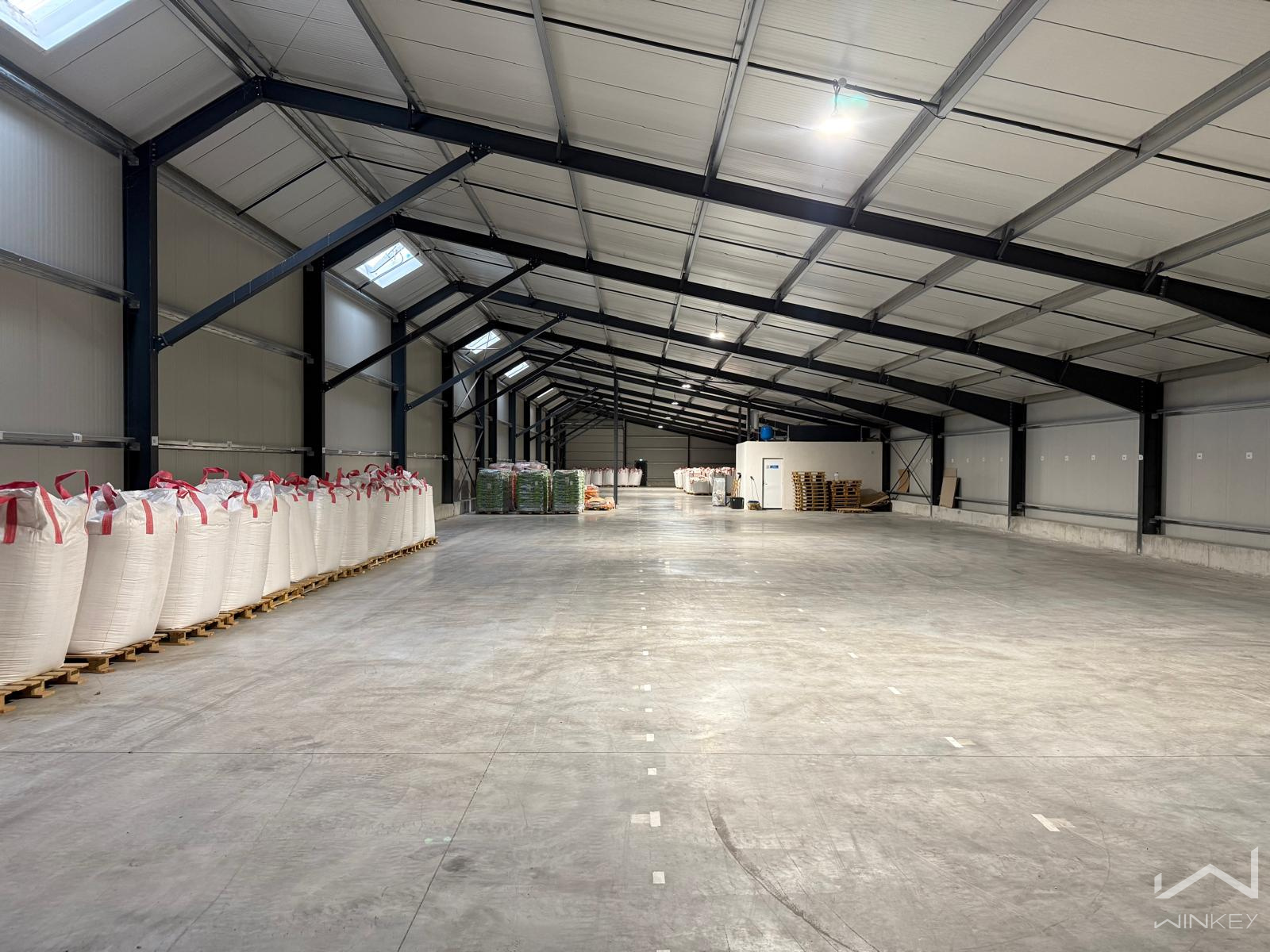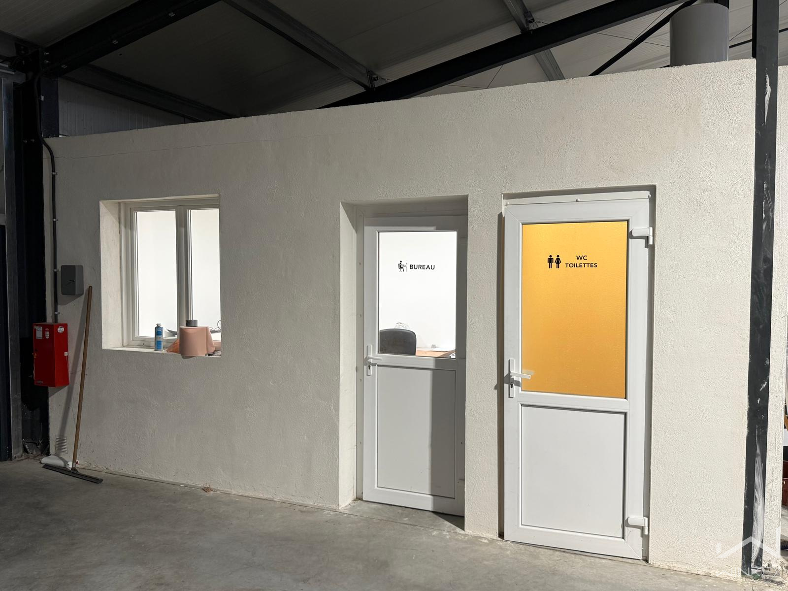 À l’intérieur, vous disposerez également d’un espace bureau ainsi que de sanitaires. L’entrepôt est bien isolé, non chauffé, avec un assainissement par fosse septique et une alimentation en eau via forage. L’électricité sera à la charge du locataire.