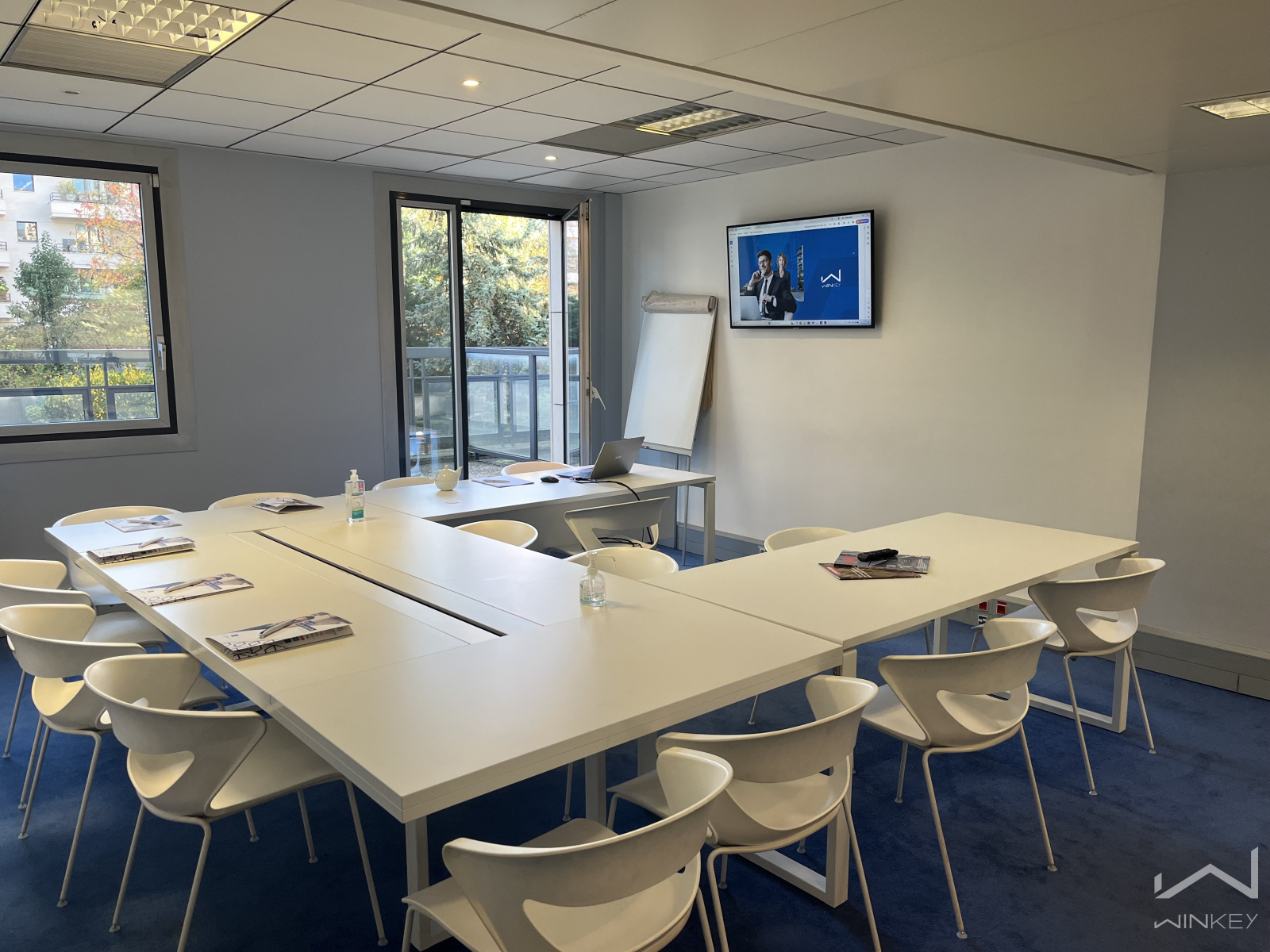 À LOUER - Bureau de 20m2 environ meublé (mobilier bureau et rangement) avec mise à disposition de la salle de réunion annexe avec point détente / restauration (machine à café, fontaine à eau, micro-onde, réfrigérateur) et un WC avec lave mains situé au 1er étage avec ascenseur d'un immeuble avec accès sécurisé. Places de parking en sous-sol.