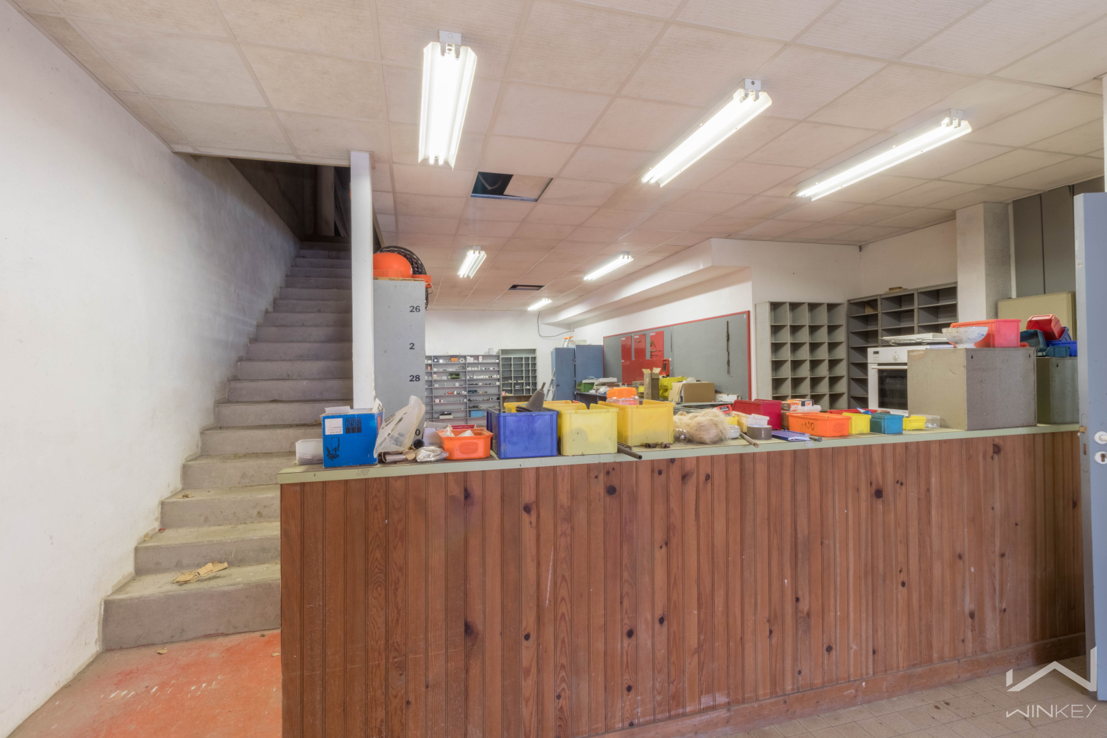 Ce bel entrepôt de 440 m² comprend un grand atelier de 182 m², une réserve de 90 m², un monte-charge, 7 bureaux, des toilettes au rez-de-chaussée et à l’étage ainsi qu’une salle d’eau à l’étage. Un grenier offre également un espace de stockage supplémentaire.