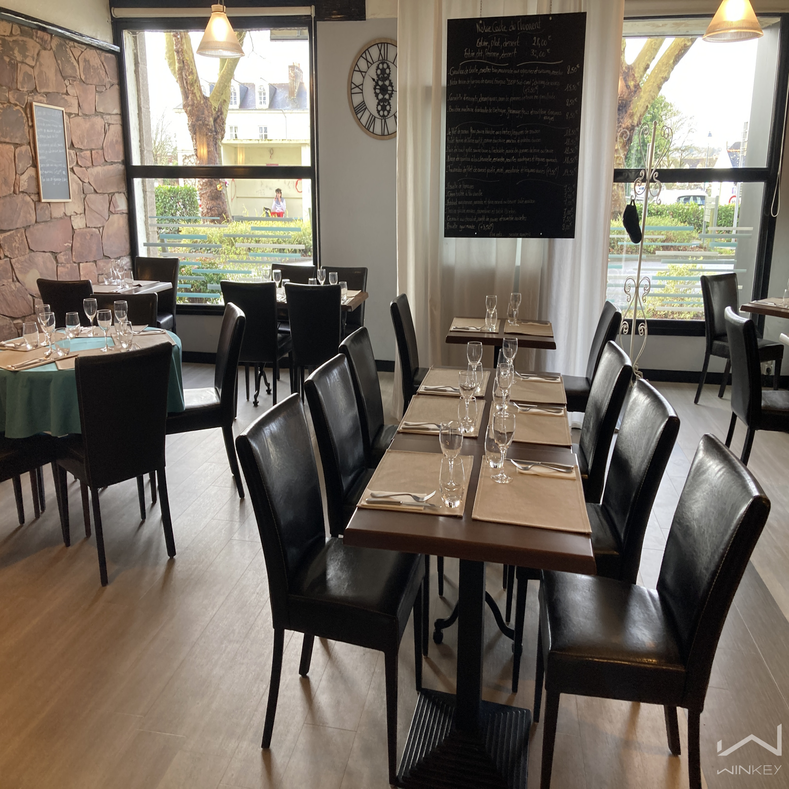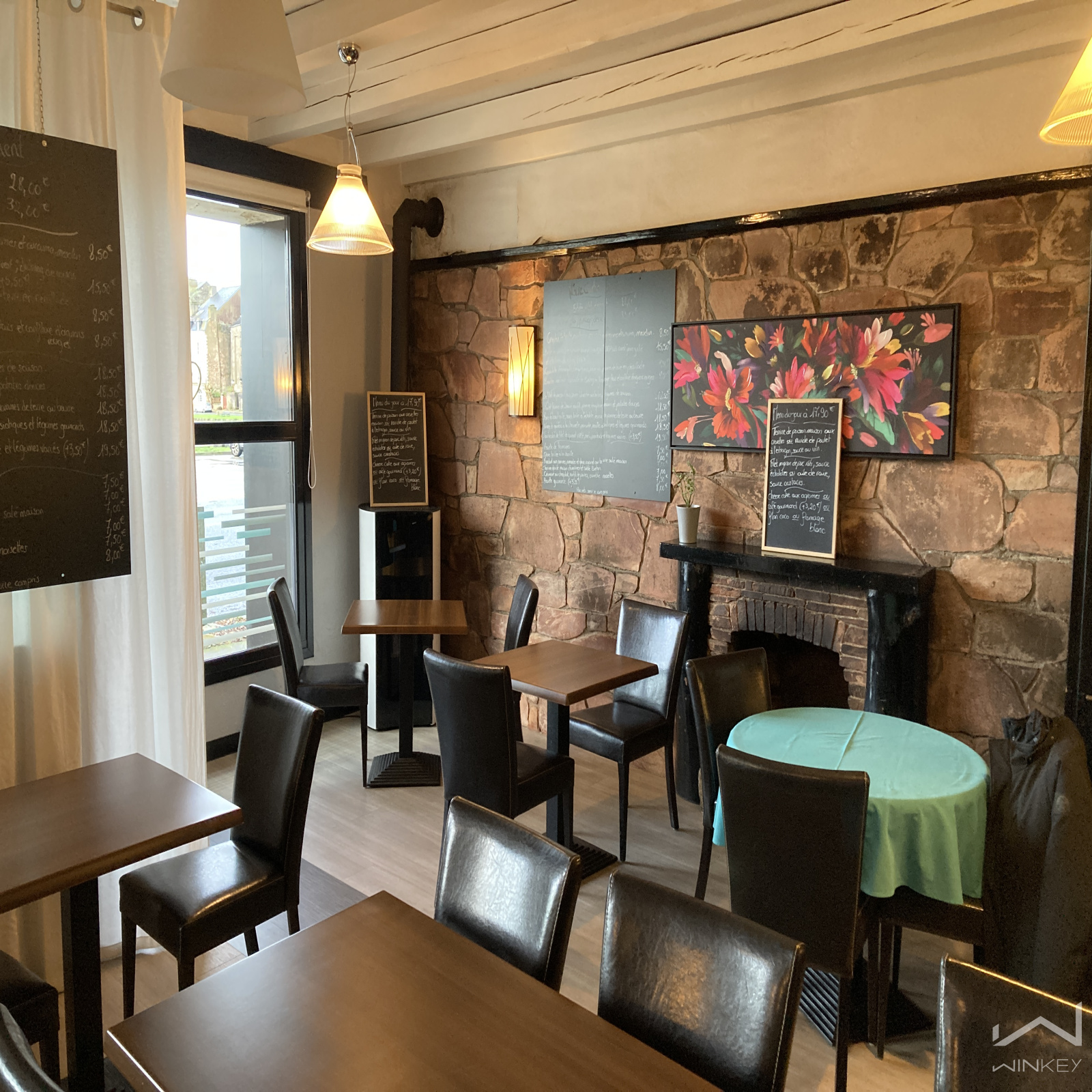 Restaurant d’environ 130 m² avec Licence IV, bar, deux salles cosy (50 et 18 m²), pour une capacité de 40 couverts. Accès PMR
