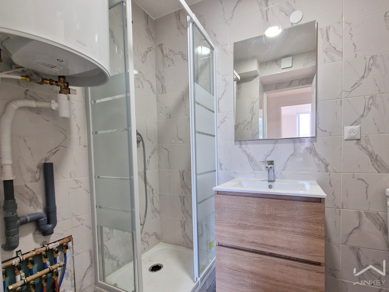 Location d'un très beau T2, NEUF situé au 1er étage d'un immeuble réhabilité, composé d'une entrée donnant sur un séjour doté d'une cuisine aménégée semi équipée (plaque induction)