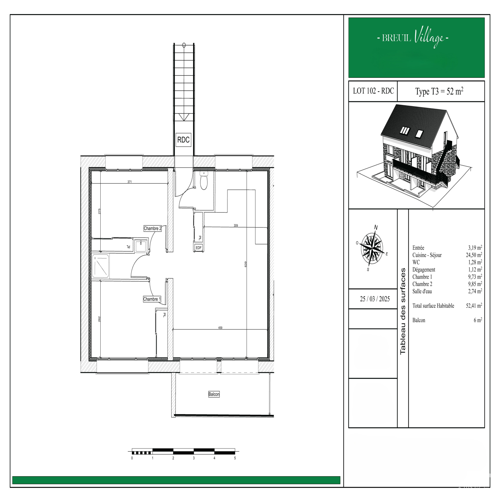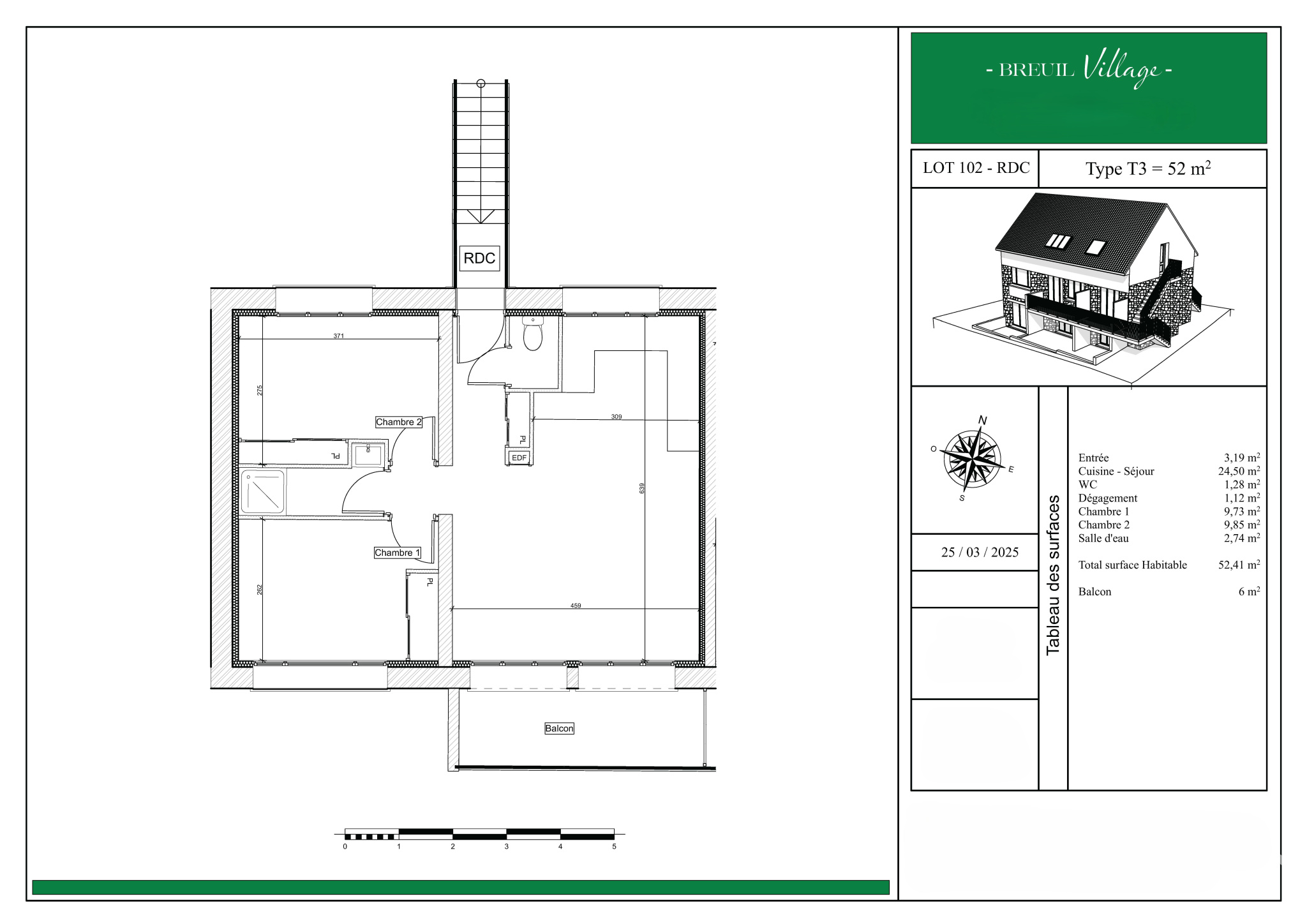 Ce logement de 52,41m² tout juste sorti de terre, dans un cadre arboré et au calme, est composé d’une entrée dont placard desservant deux chambres de 10m² env. avec placard intégré, une salle d’eau, un grand séjour de 24,5m² associé à une cuisine équipée (plaque à Induction et hotte).