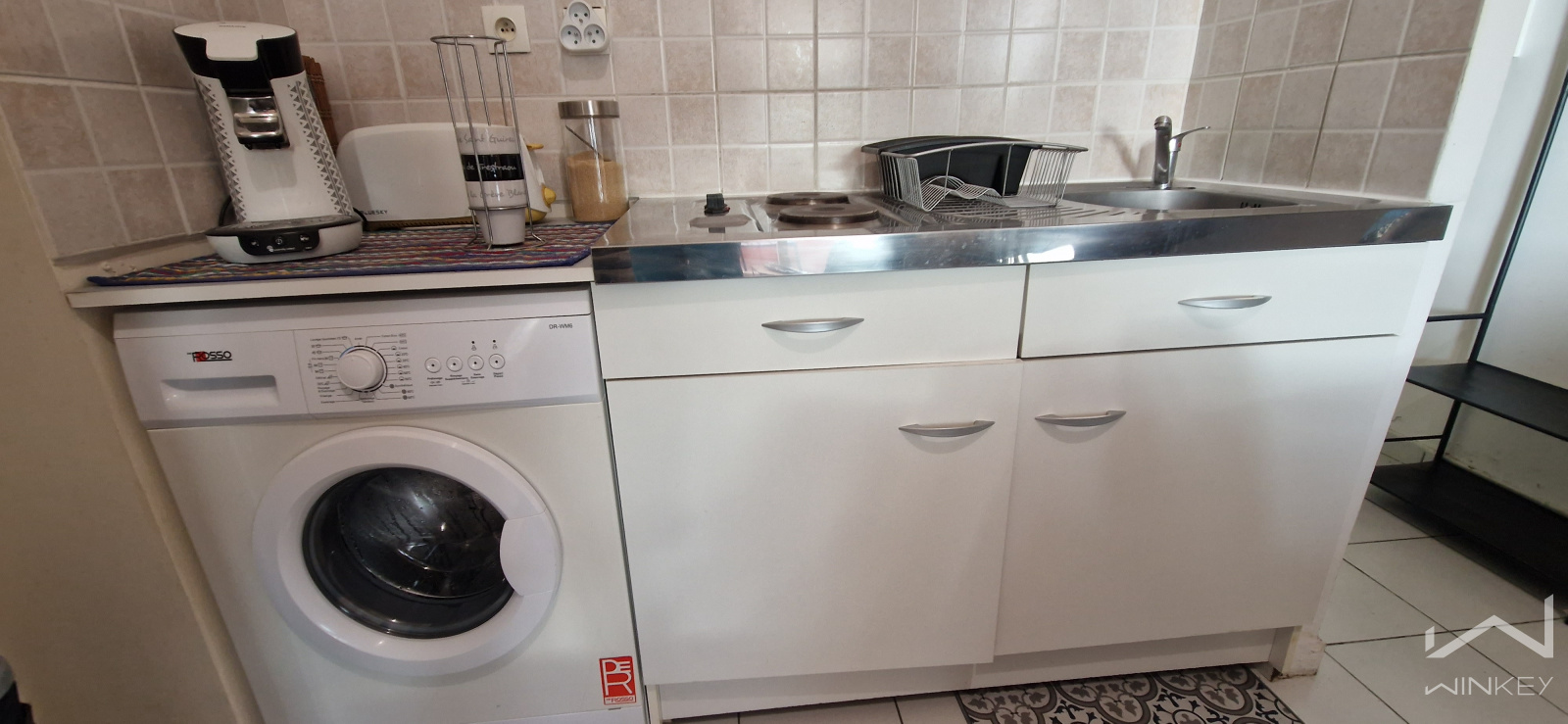 Machine à lavée, lit 140x190, clic clac , tv écran plat smart Tv, cafetière, autocuiseur à riz et même les coupes de champagne !