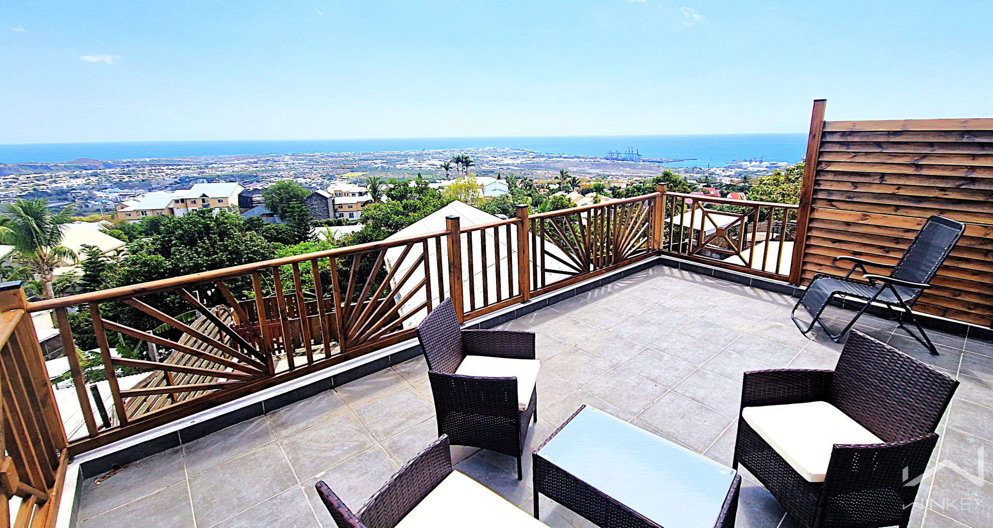 Nous vous proposons à la location, en exclusivité, une Villa duplexe inversée de type F4 de 87.41 m2 habitable, soit 130.34 m2 de surface totale, à LA POSSESSION dans le quartier de SAINTE-THERESE dans l'Ouest de l’ÎLE DE LA RÉUNION.
