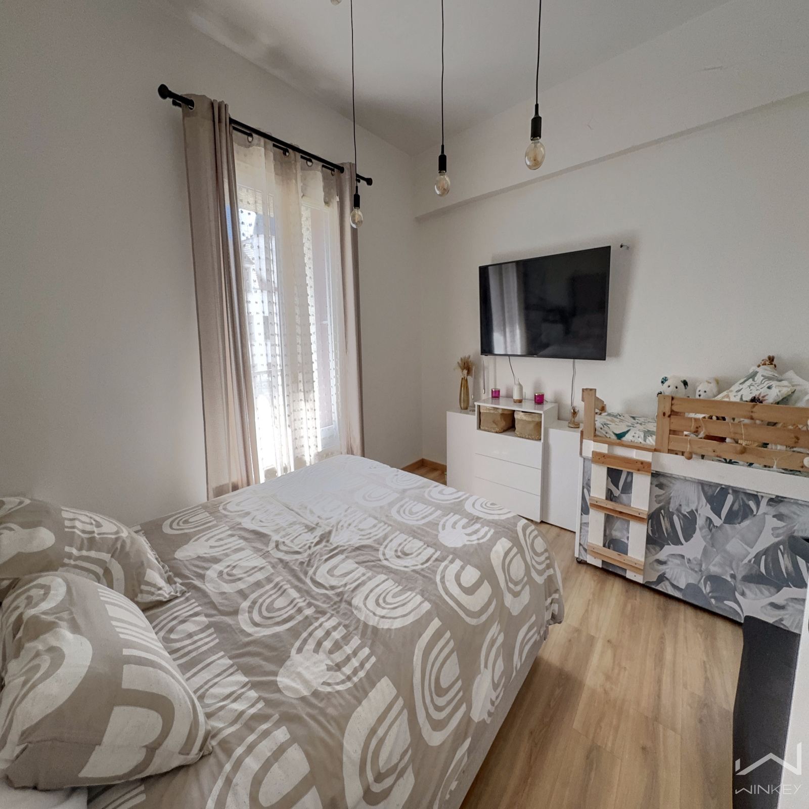 Il se compose d'une entrée desservant une belle pièce de vie lumineuse avec une cuisine ouverte, une chambre avec son dressing, une très belle salle d'eau et un WC.