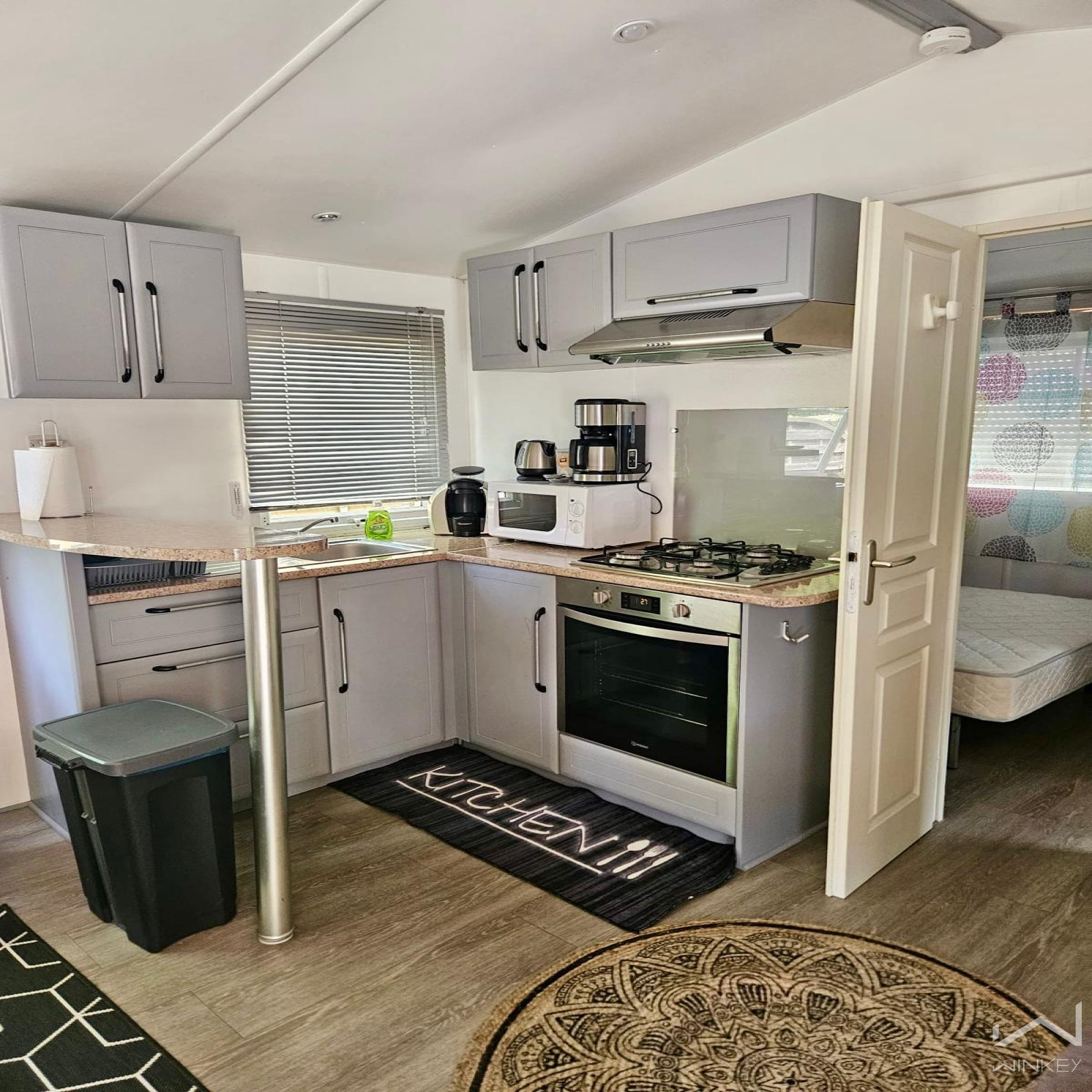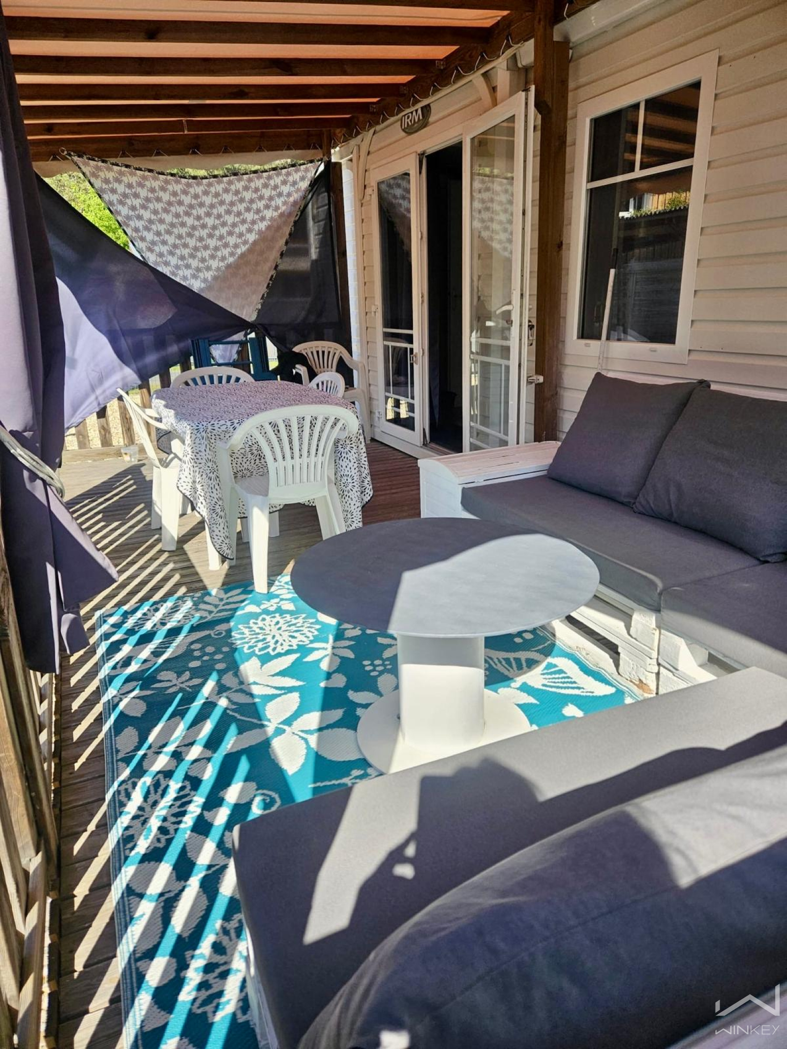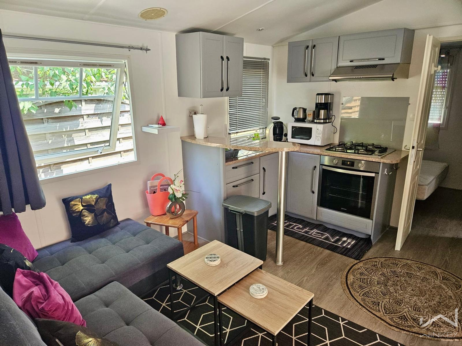 Dans un village vacances calme et recherché, mobil-home sur roue, quatre saisons de 2005 sur terrain en pleine propriété de 194 m², meublé et entièrement rénové en 2023 (parquet, peinture, clim réversible). Il comprend 2 chambres, séjour, cuisine, salle d’eau, WC séparés, terrasse exposée sud.