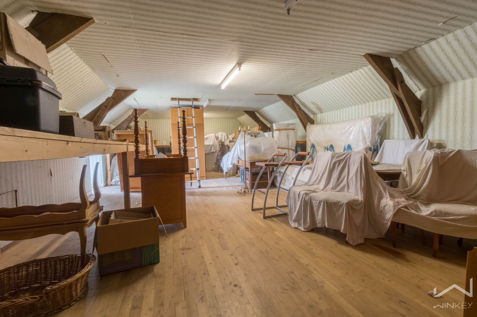 À l’étage, une très grande pièce de 62 m², offre de multiples possibilités d’aménagement (chambres supplémentaires, espace bureau, salle de loisirs, etc.). Un grenier vient compléter ce niveau.
