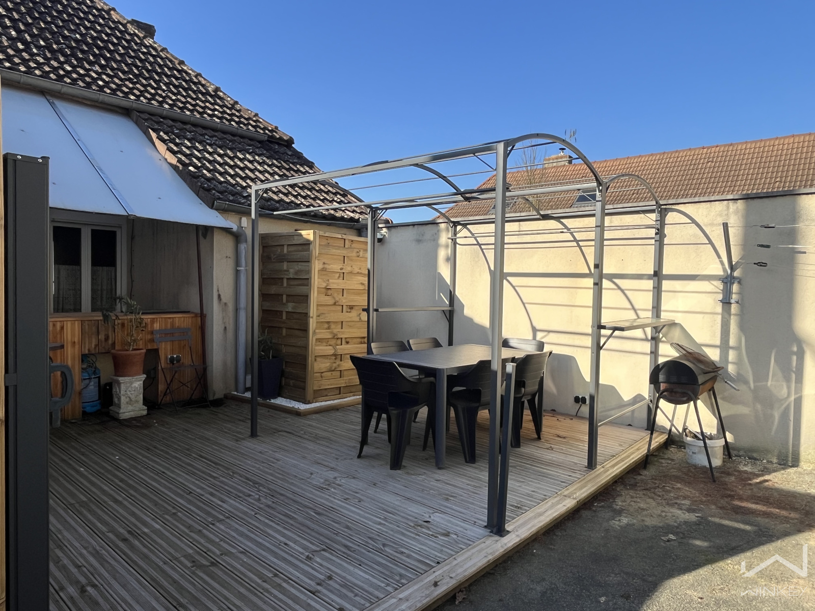 A l'extérieur, une petite terrasse permet de profiter des beaux jours pour vos repas en plein air. Un garage ouvert complète l'ensemble.