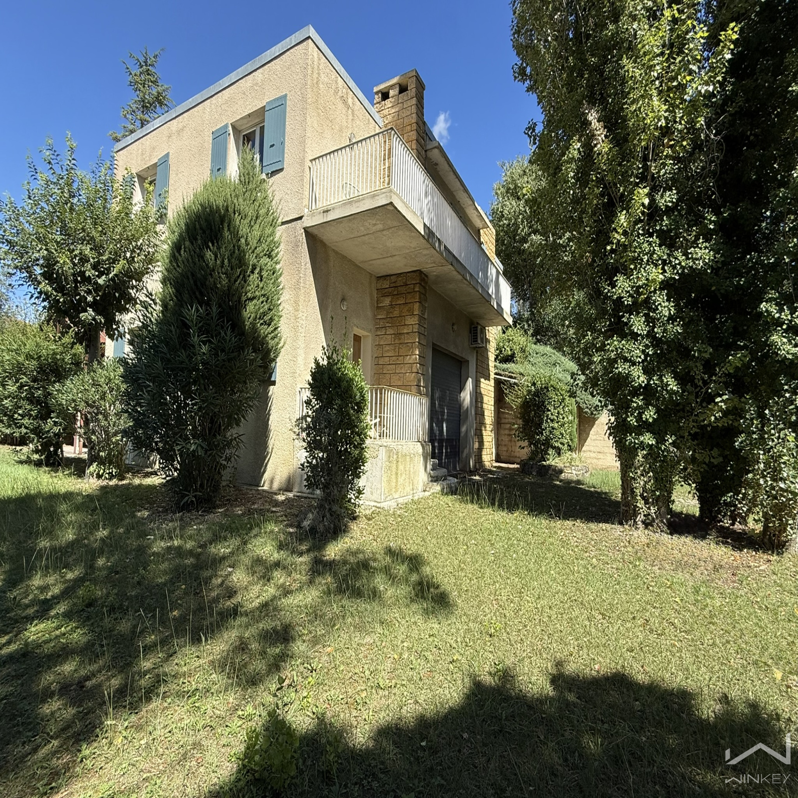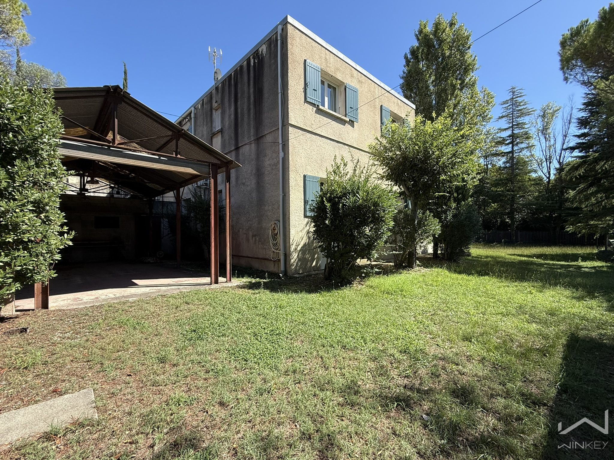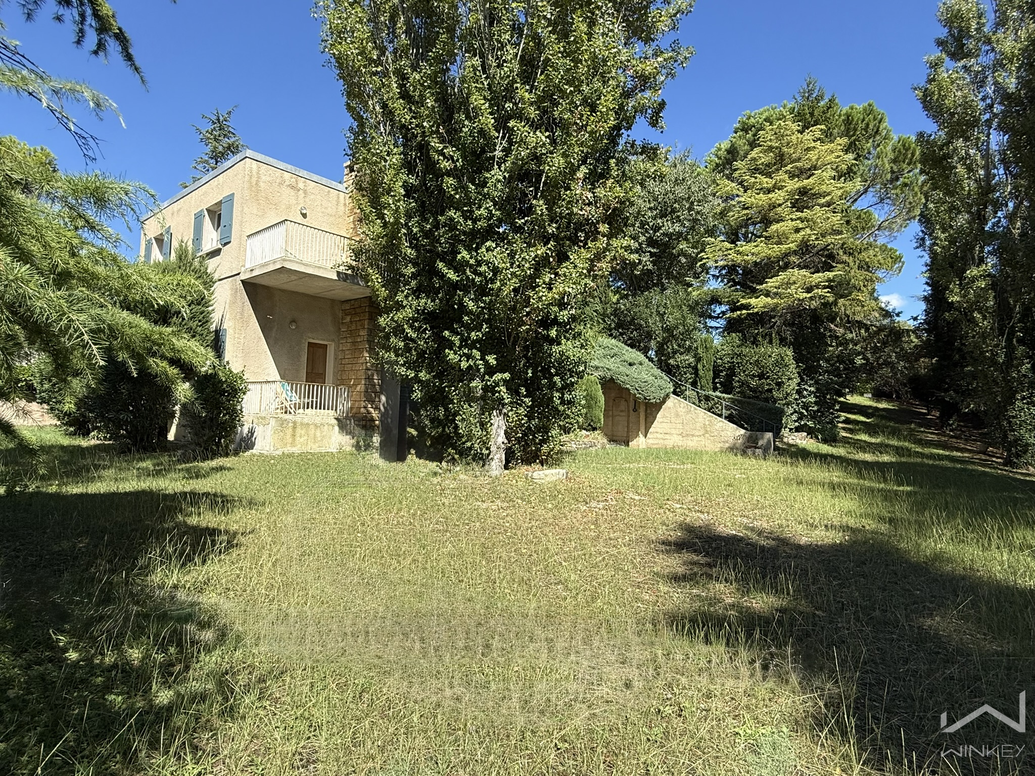 Située à proximité immédiate du centre-ville de Bollène, cette maison d’architecte à toit plat, construite en 1973, se distingue par ses volumes, ses dépendances et son fort potentiel d’aménagement.