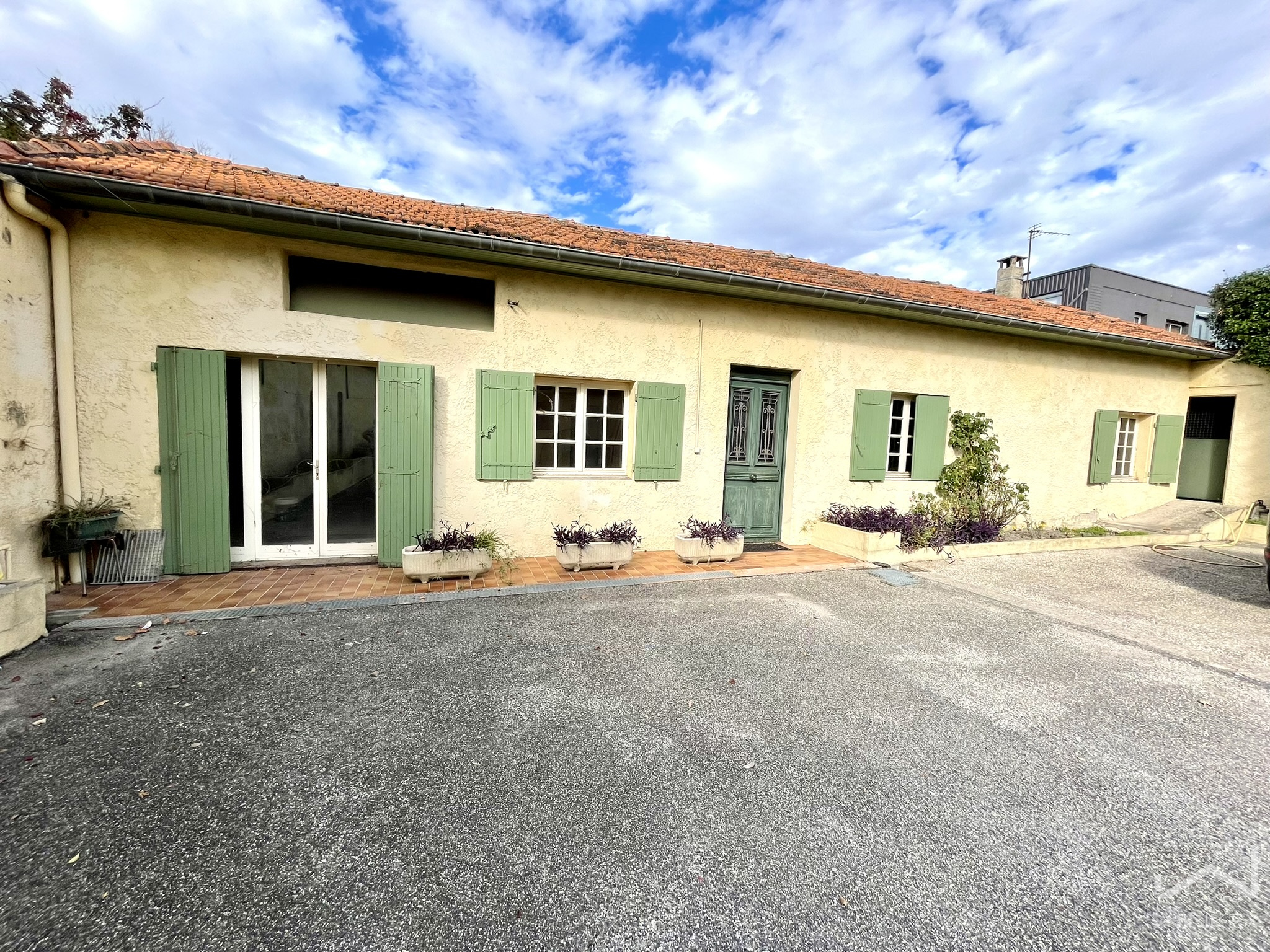 Derrière son portail, vous découvrez un terrain clos de 1 300 m², particulièrement rare en cœur de ville, offrant cour intérieure, espaces de stationnement sécurisés et un cadre préservé, à l’abri des regards.