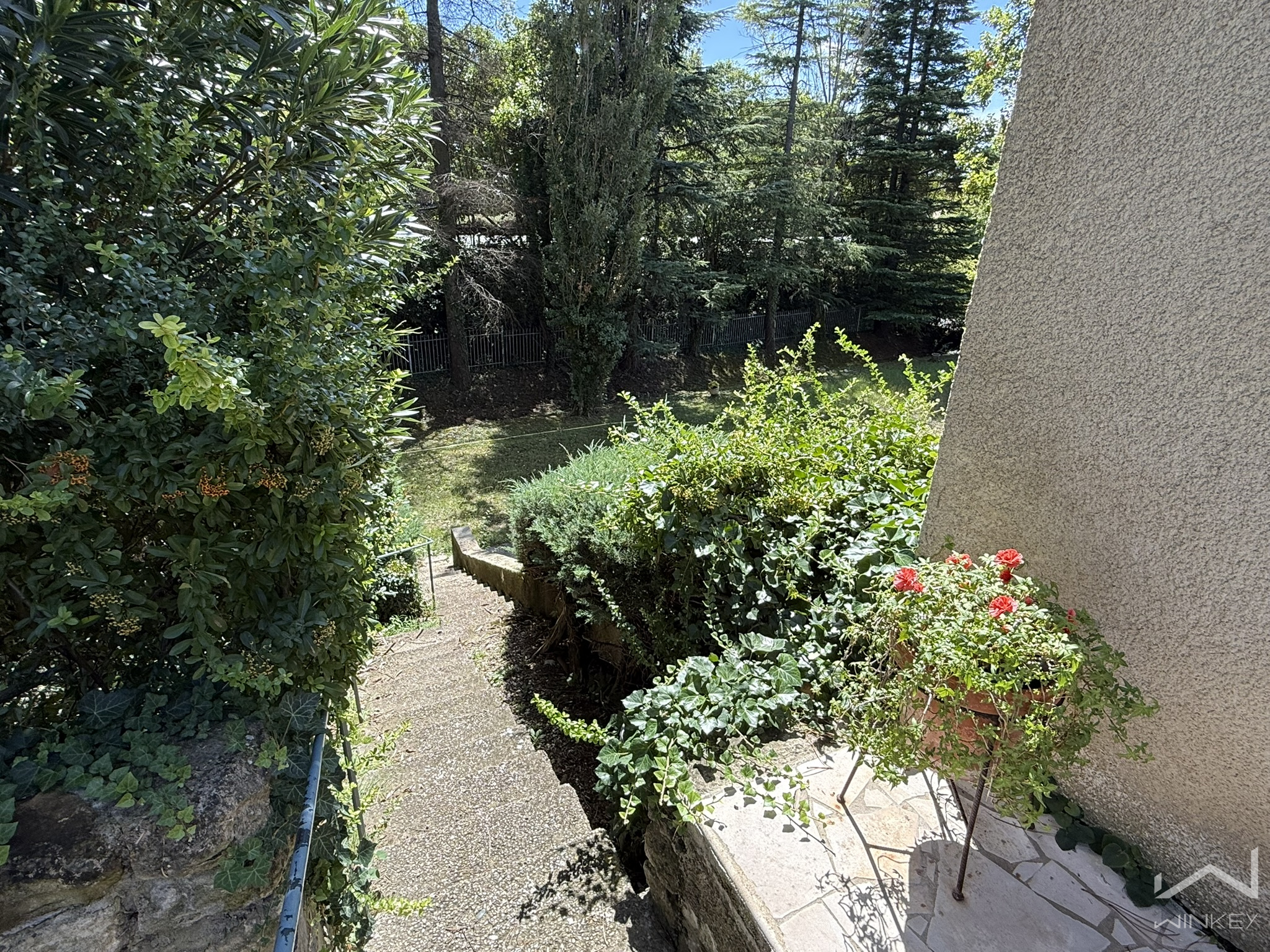 Implantée sur un terrain clos et arboré de 2 139 m², agrémenté d’arbres centenaires, la propriété bénéficie de deux accès distincts et fonctionnels :