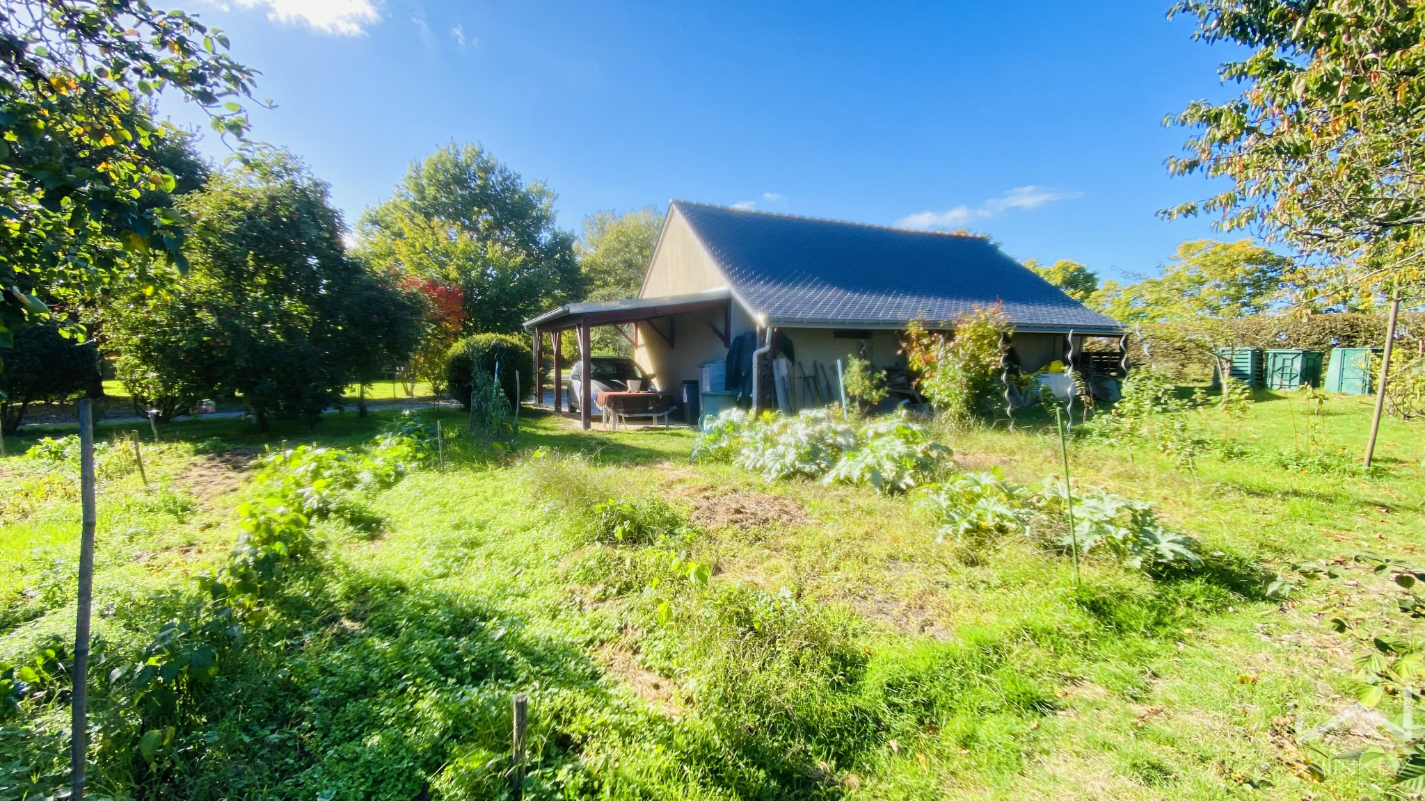 Le jardin sans vis à vis est joliment paysagé et arboré. Il comprend: une terrasse aménagée, un potager, un verger, une zone pour le compost et une cuve à eau enterrée pour l’arrosage.