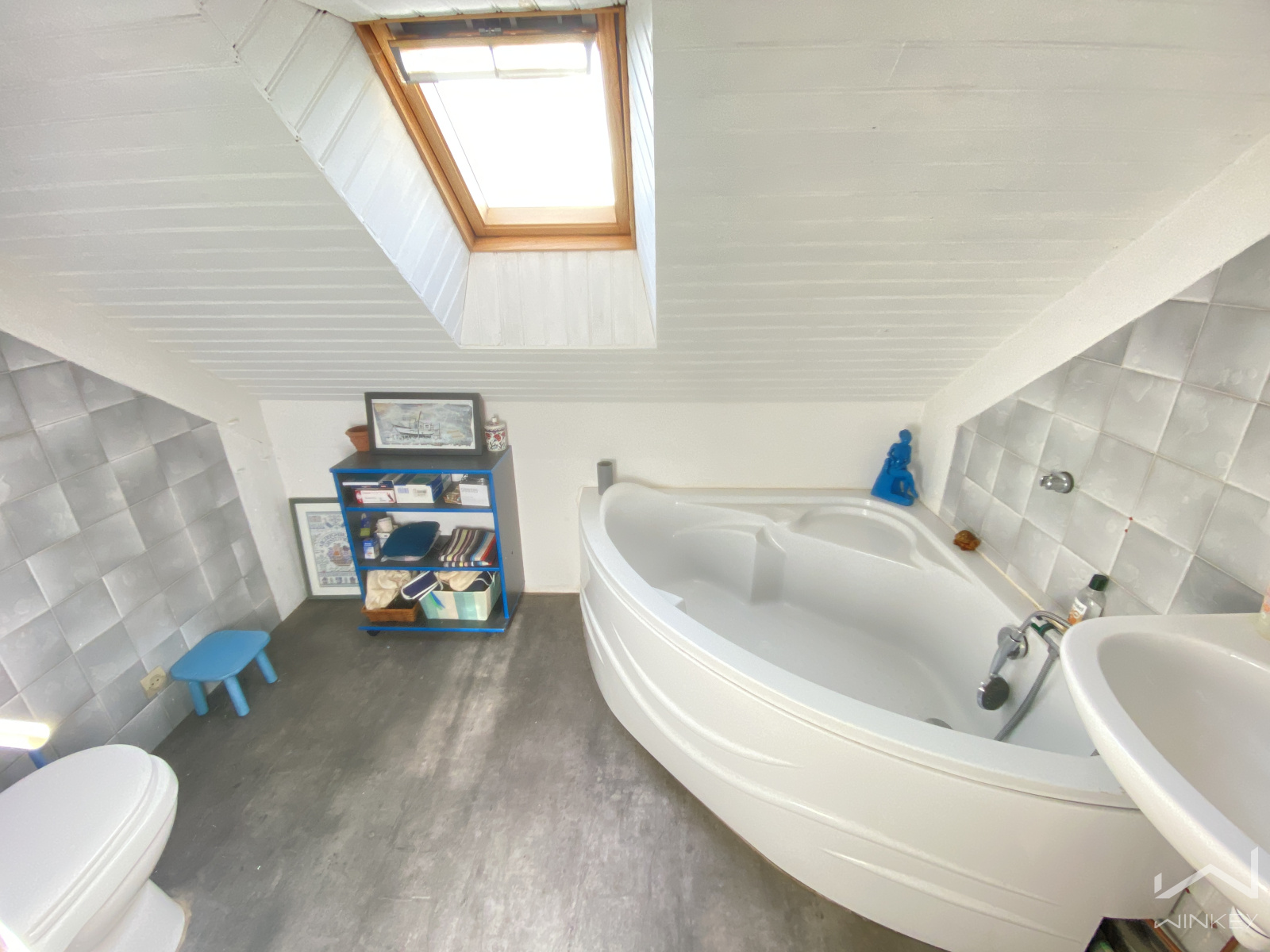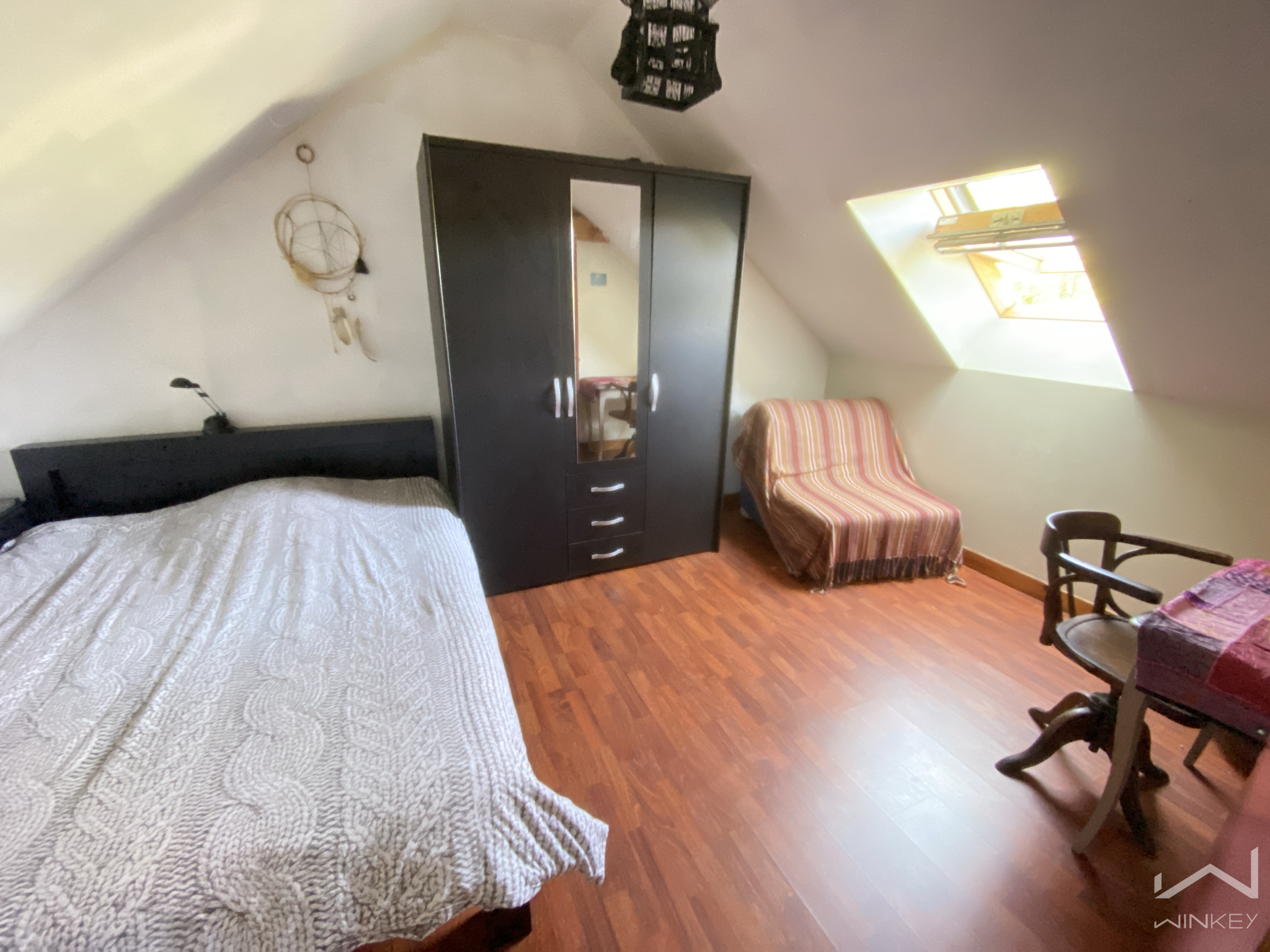 À l’étage, vous découvrirez deux autres chambres aux volumes confortables ainsi qu’une salle de bains équipée d’une baignoire d’angle et de WC.