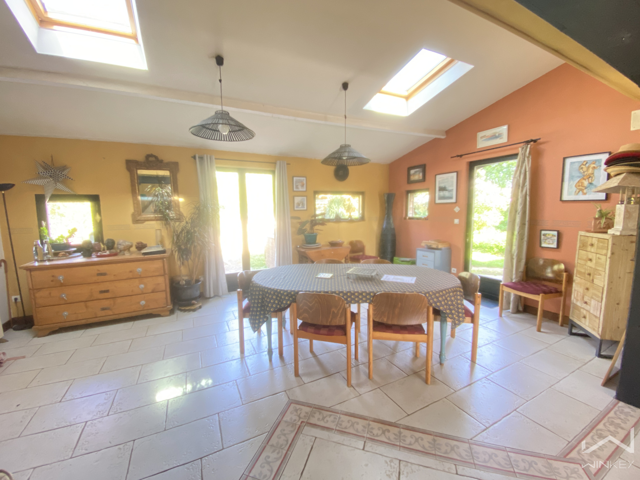 Implantée sur un terrain d’environ 18 940 m², cette maison d’habitation développe une surface d’environ 122 m² et séduit immédiatement par ses volumes généreux et son atmosphère chaleureuse.