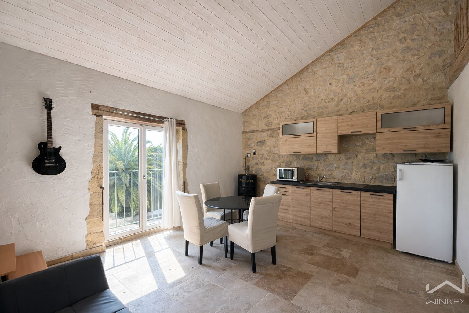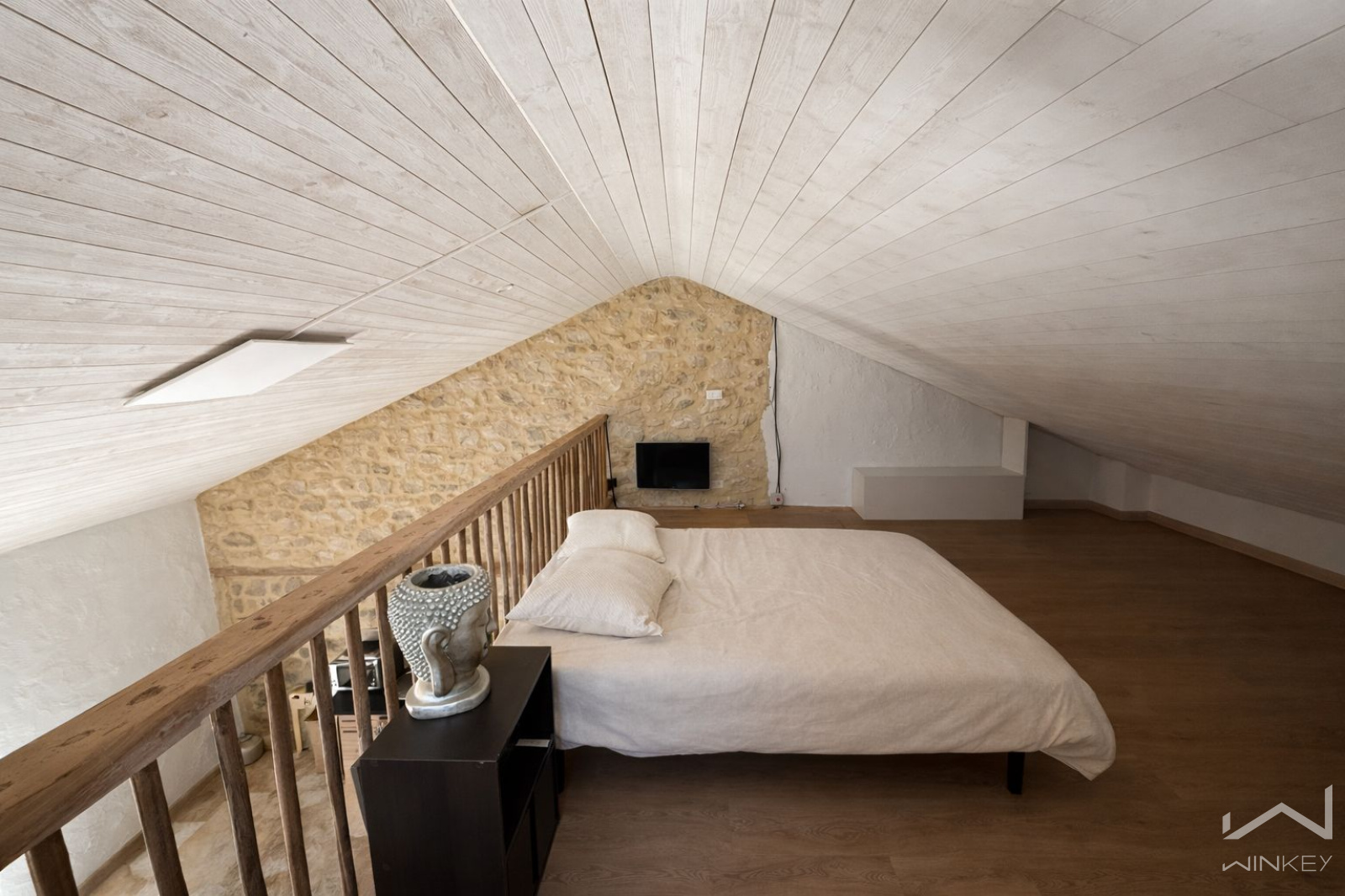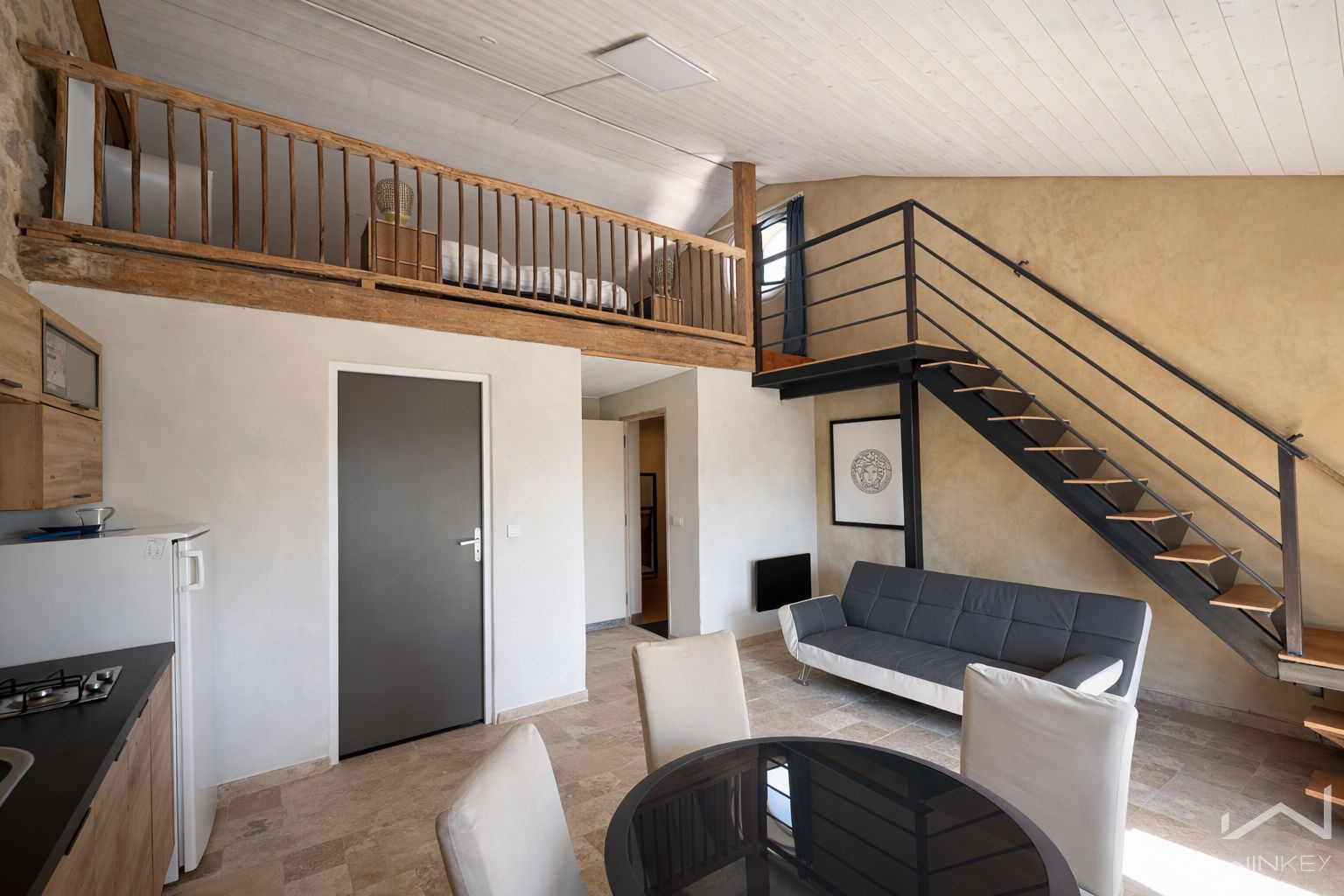 La partie droite du mas accueille deux espaces indépendants. Un premier logement en rez-de-chaussée d’environ 20 m², ainsi qu’un second à l’étage d’environ 50 m², disposant d’une mezzanine faisant office de chambre.