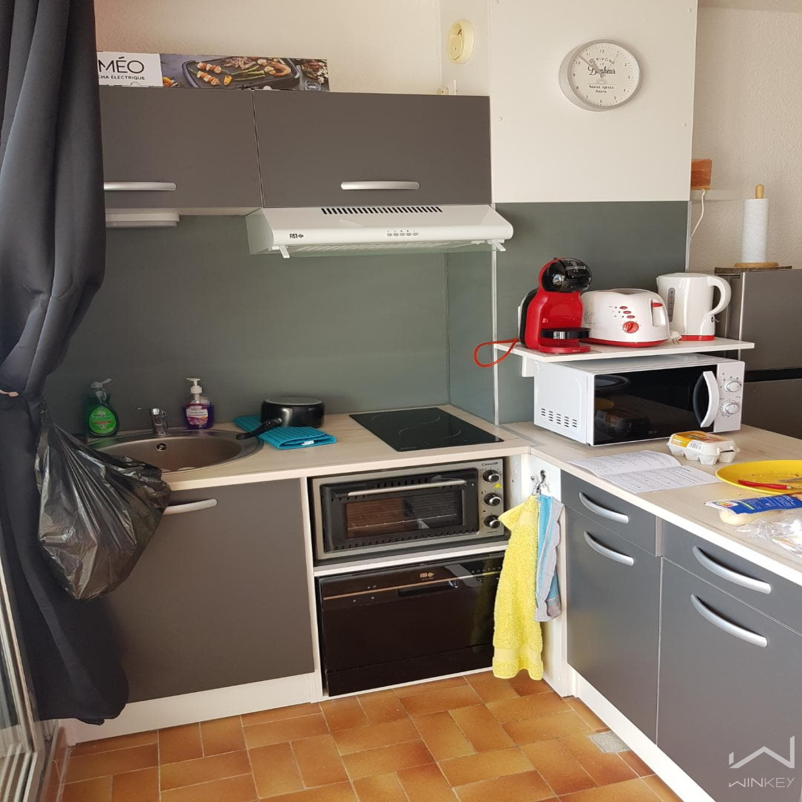 Cuisine, équipée, ouverte sur un salon lumineux