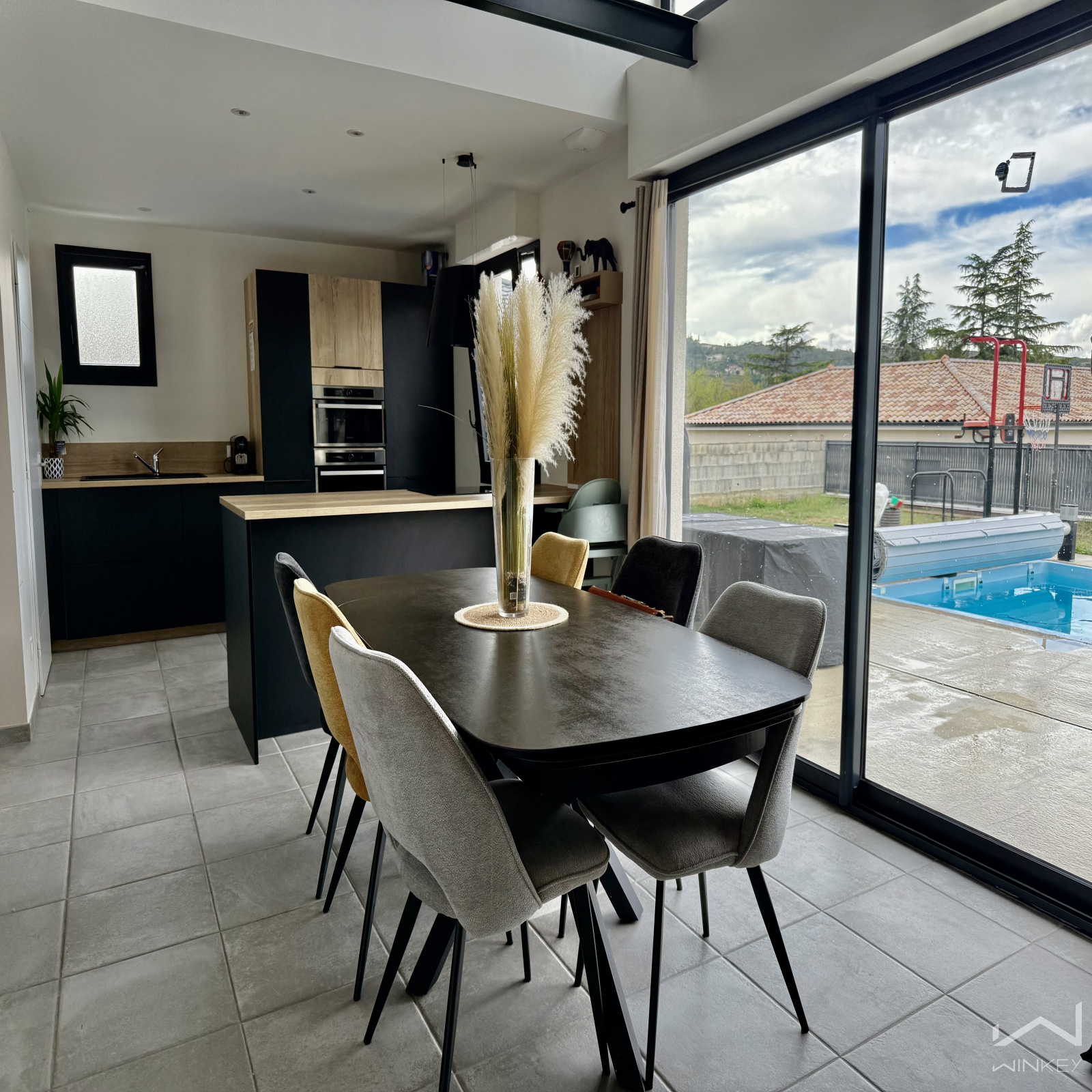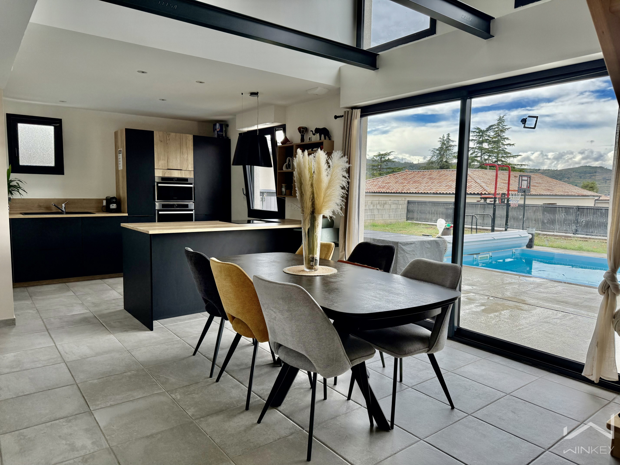 Récente, lumineuse et clé en main, cette villa contemporaine de 136,77 m² habitables, construite en 2024 (RT 2012), offre un cadre de vie rare, alliant confort moderne, volumes généreux et vue dégagée sur la vallée.