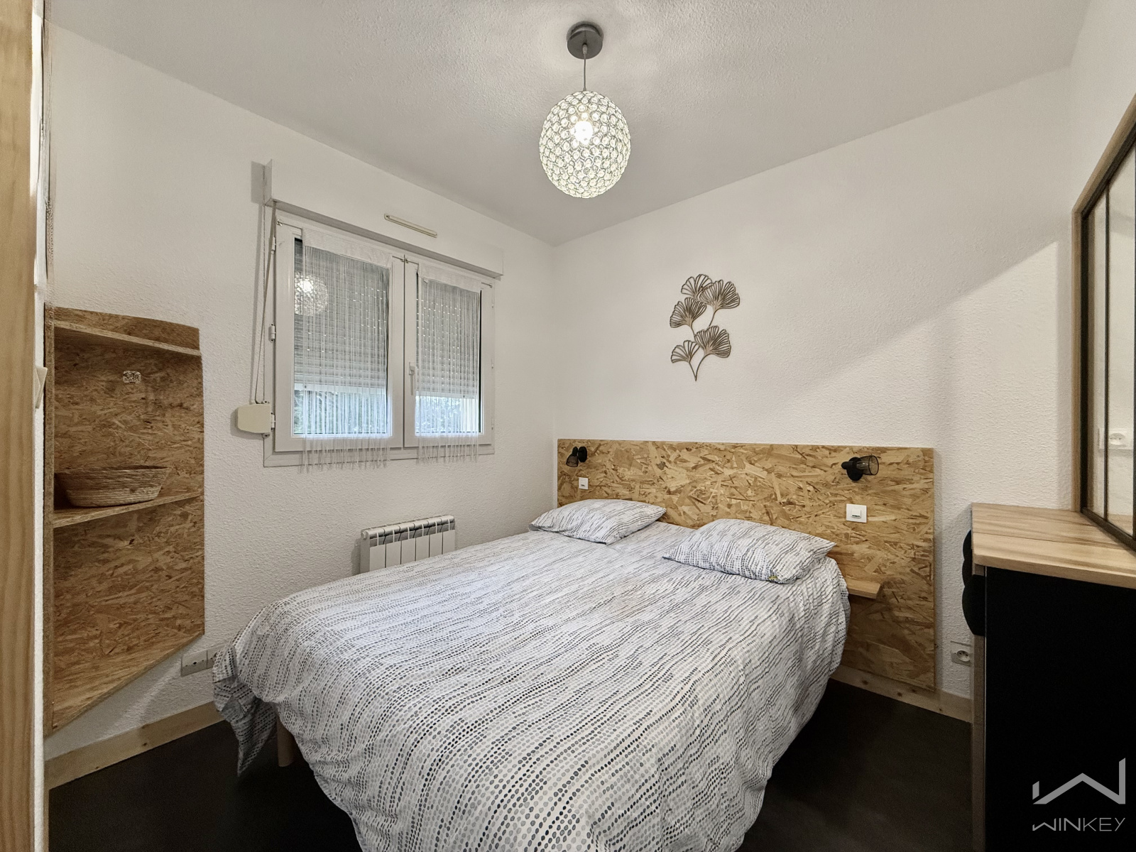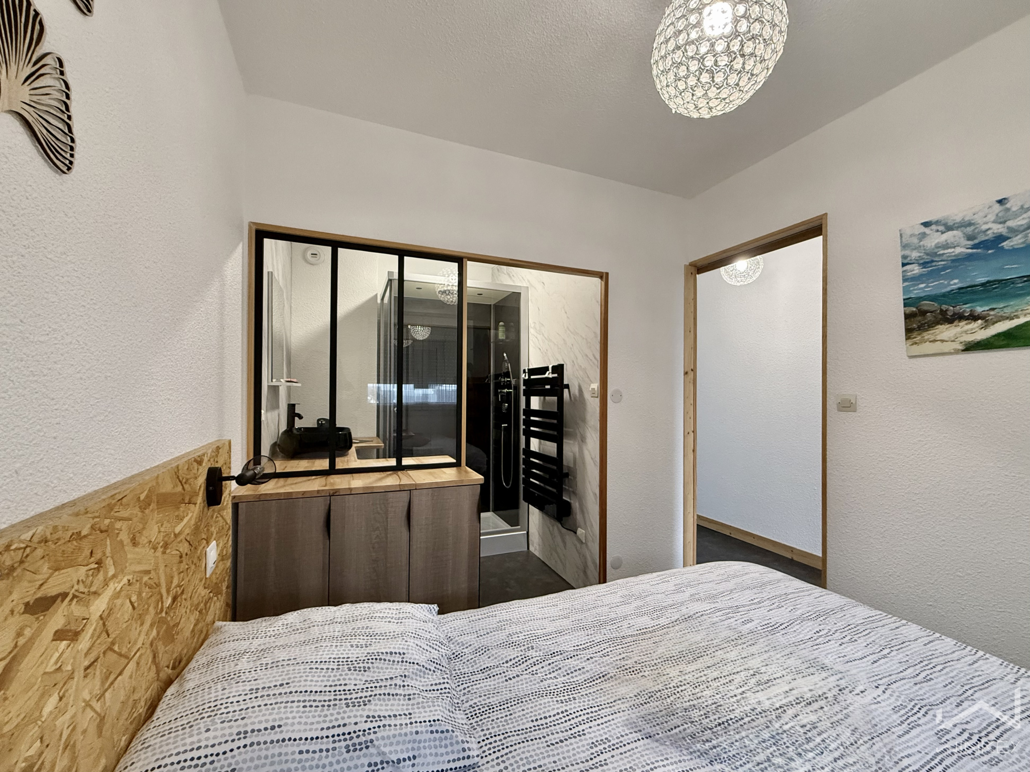L’espace nuit accueille une belle chambre parentale lumineuse avec sa salle d’eau privative.