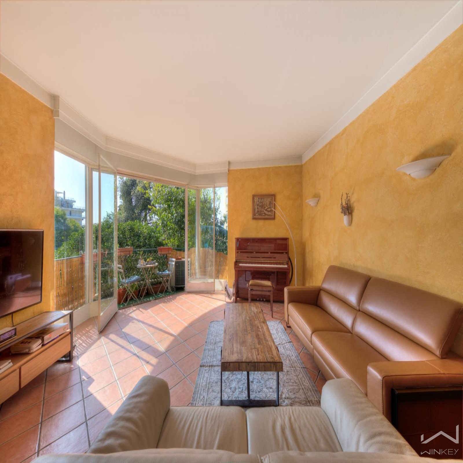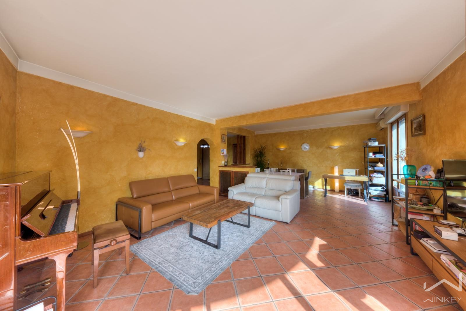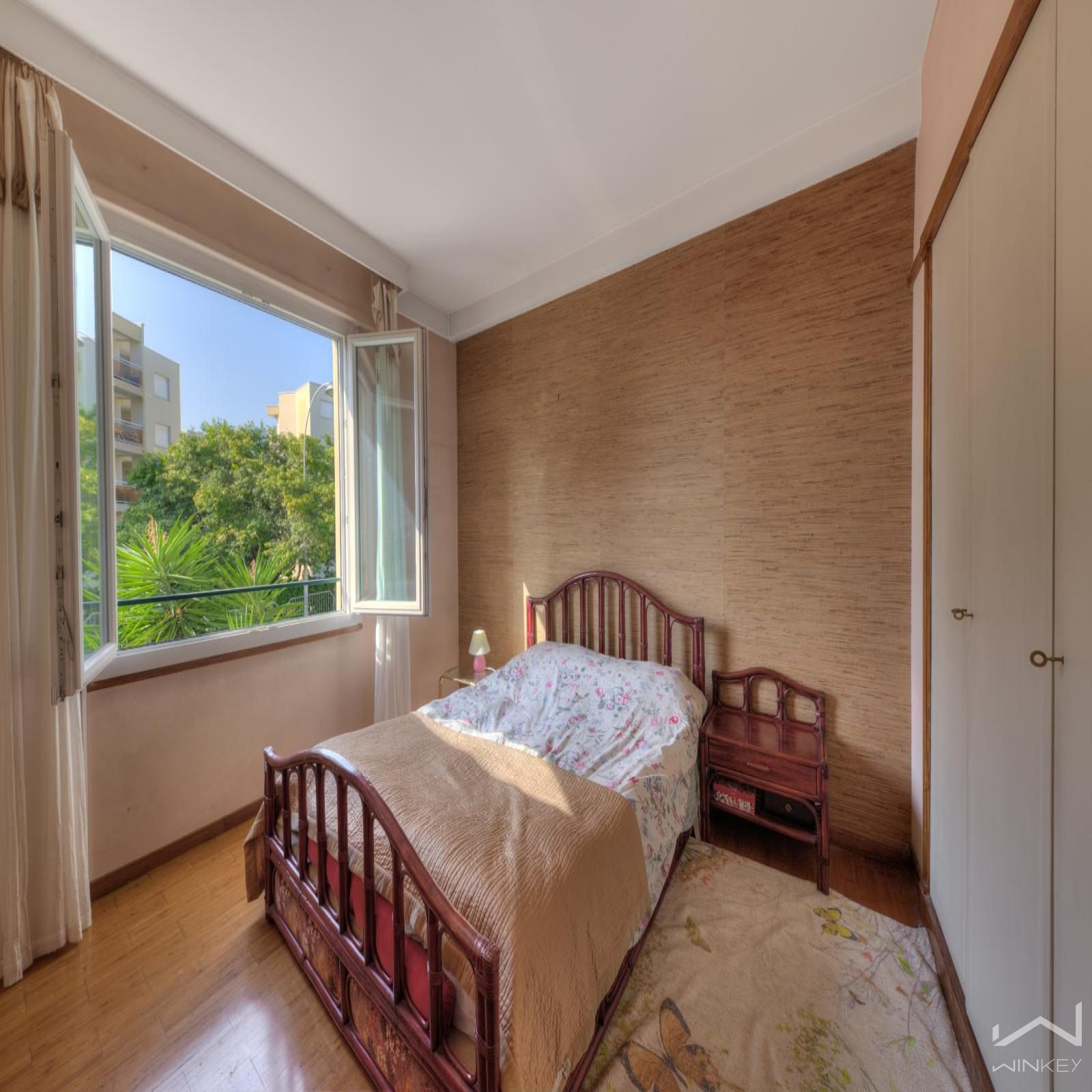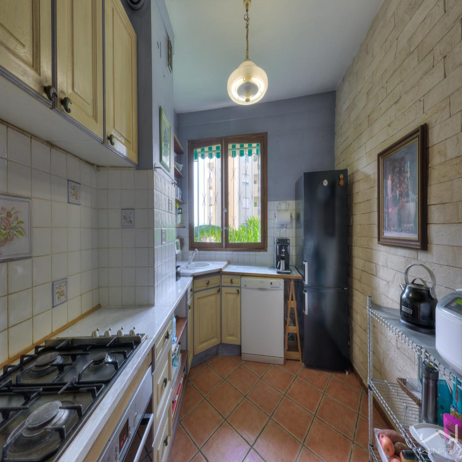 Un appartement familial de 98 m² avec ascenseur, comprenant une entrée, un double séjour lumineux avec balcon, trois chambres, une cuisine séparée, une salle de bain et des WC séparés.