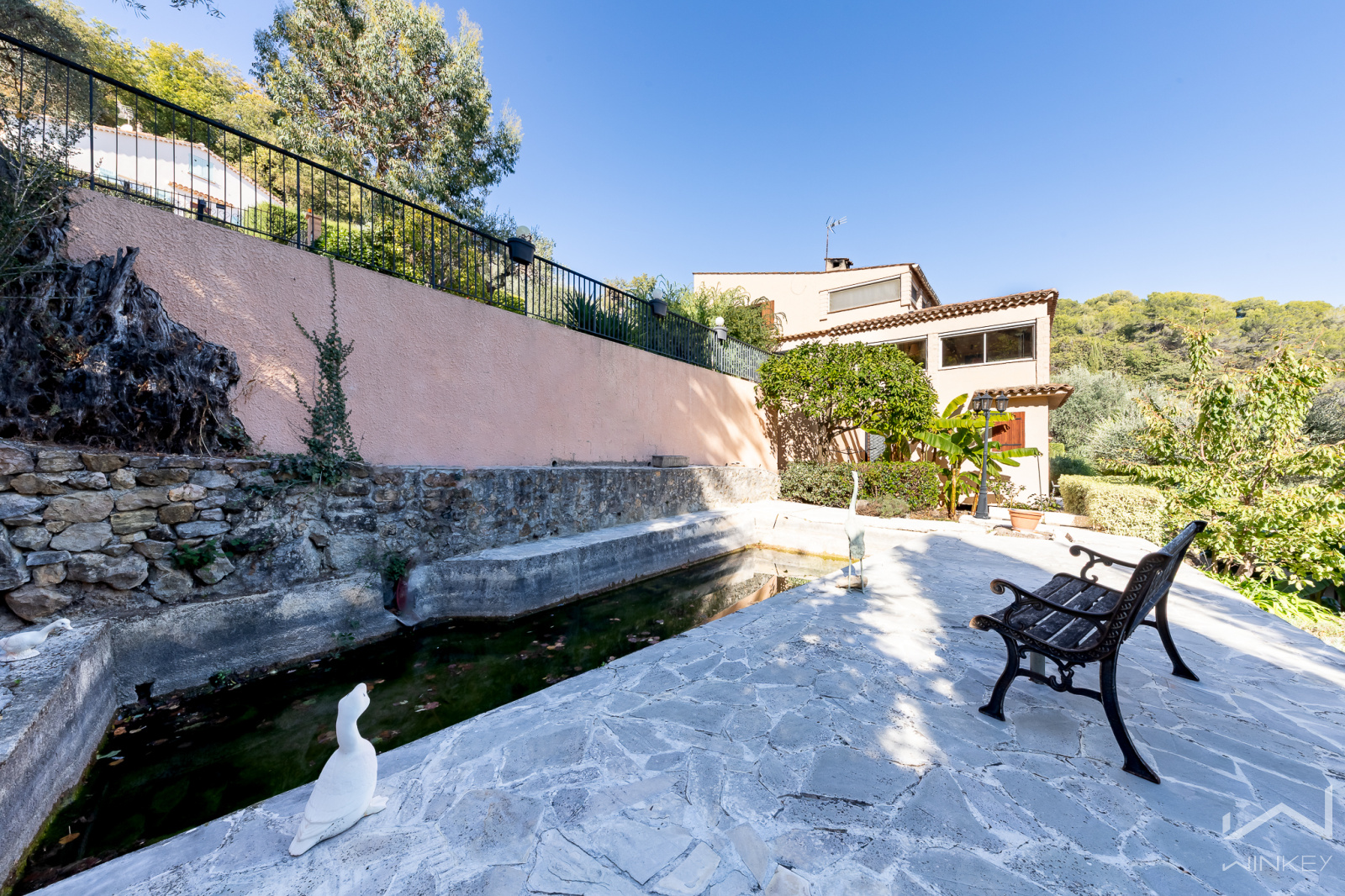 Côté extérieur, vous serez séduits par les différentes terrasses permettant de profiter du soleil à toute heure de la journée, une belle piscine, un bassin à poissons, et un jardin joliment paysagé agrémenté de magnifiques bananiers.