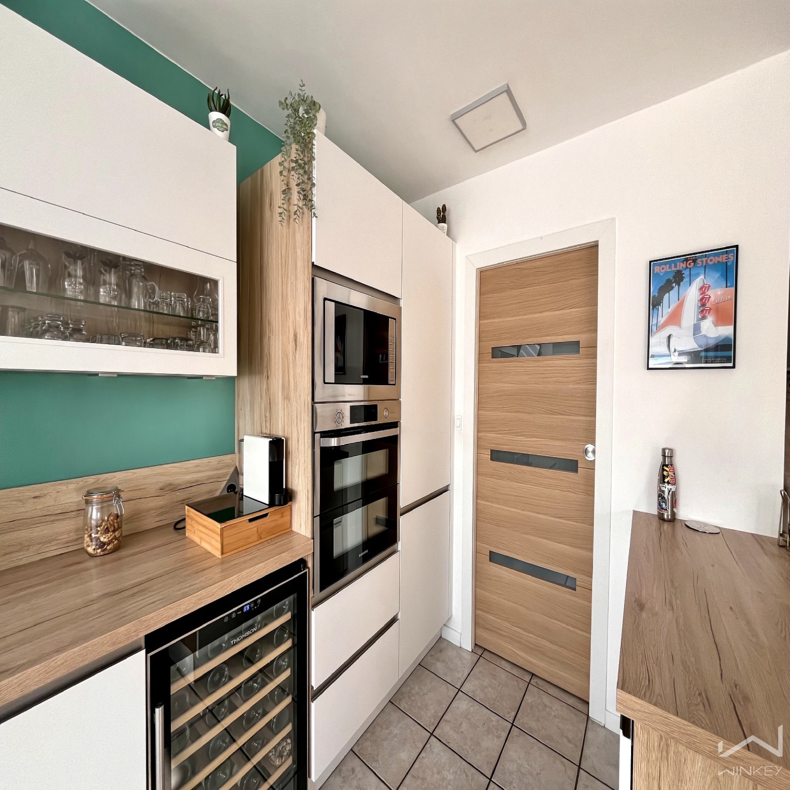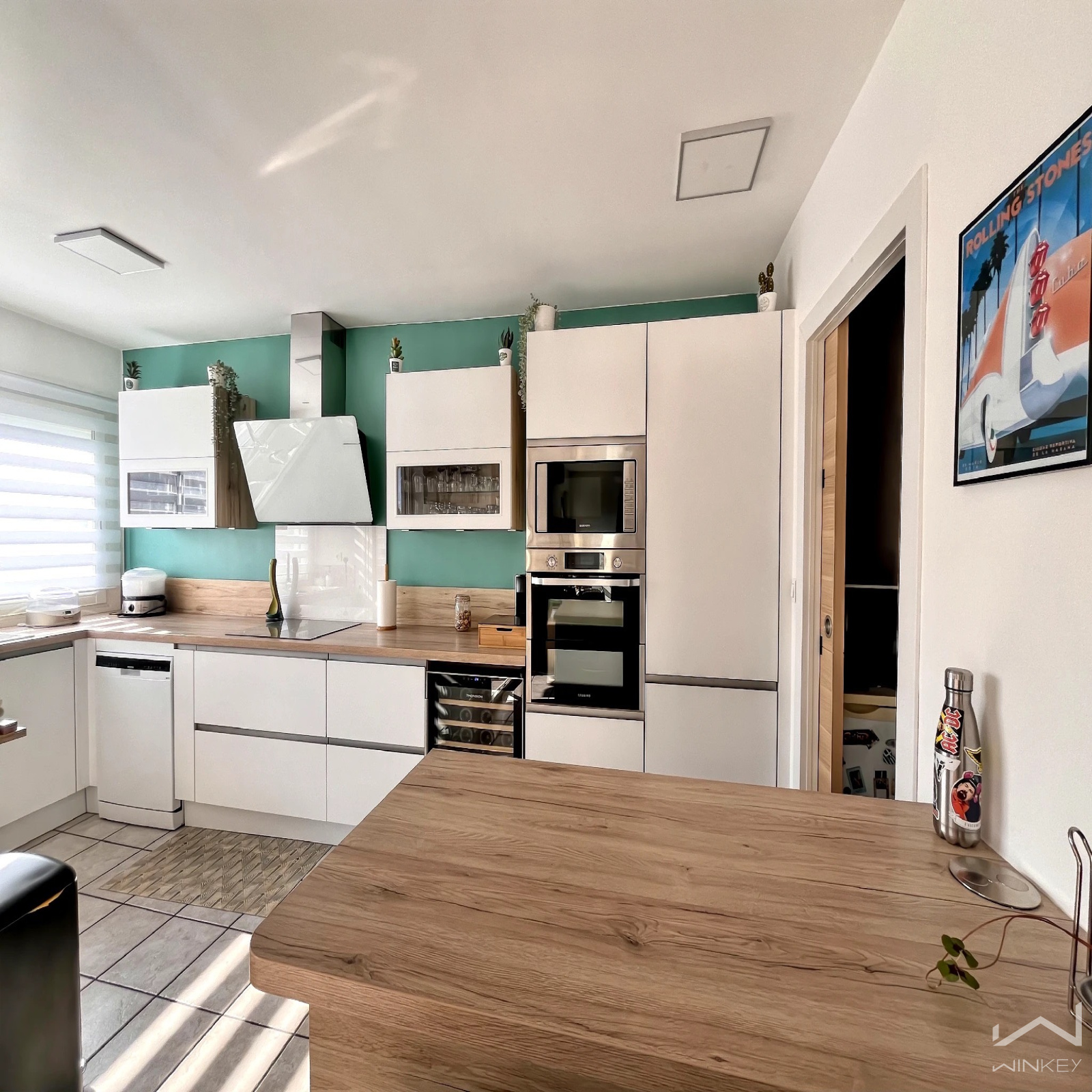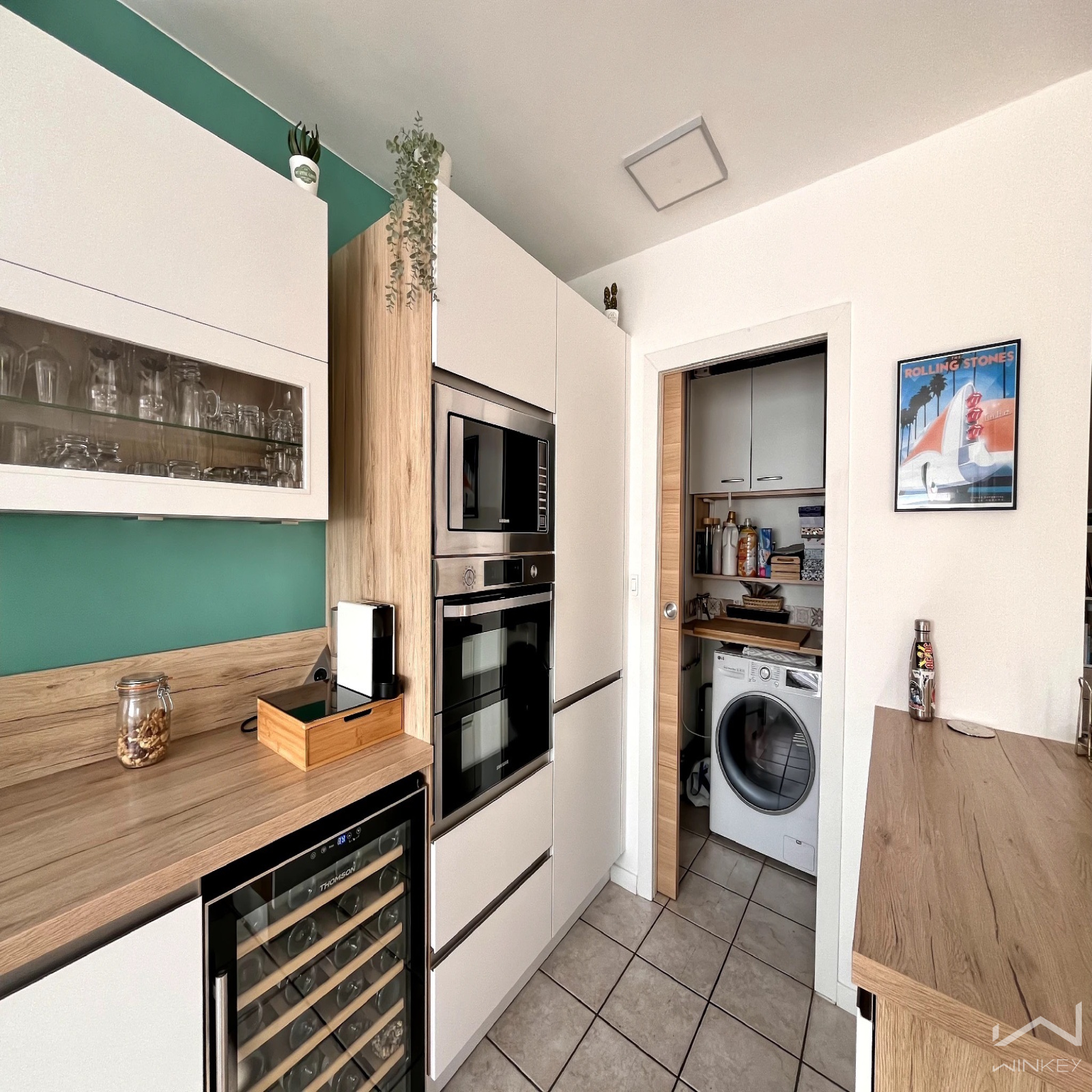 Totalement rénovée et aux goûts actuels, la cuisine est entièrement équipée et dispose de nombreux rangements, ainsi qu’un espace buanderie pratique.