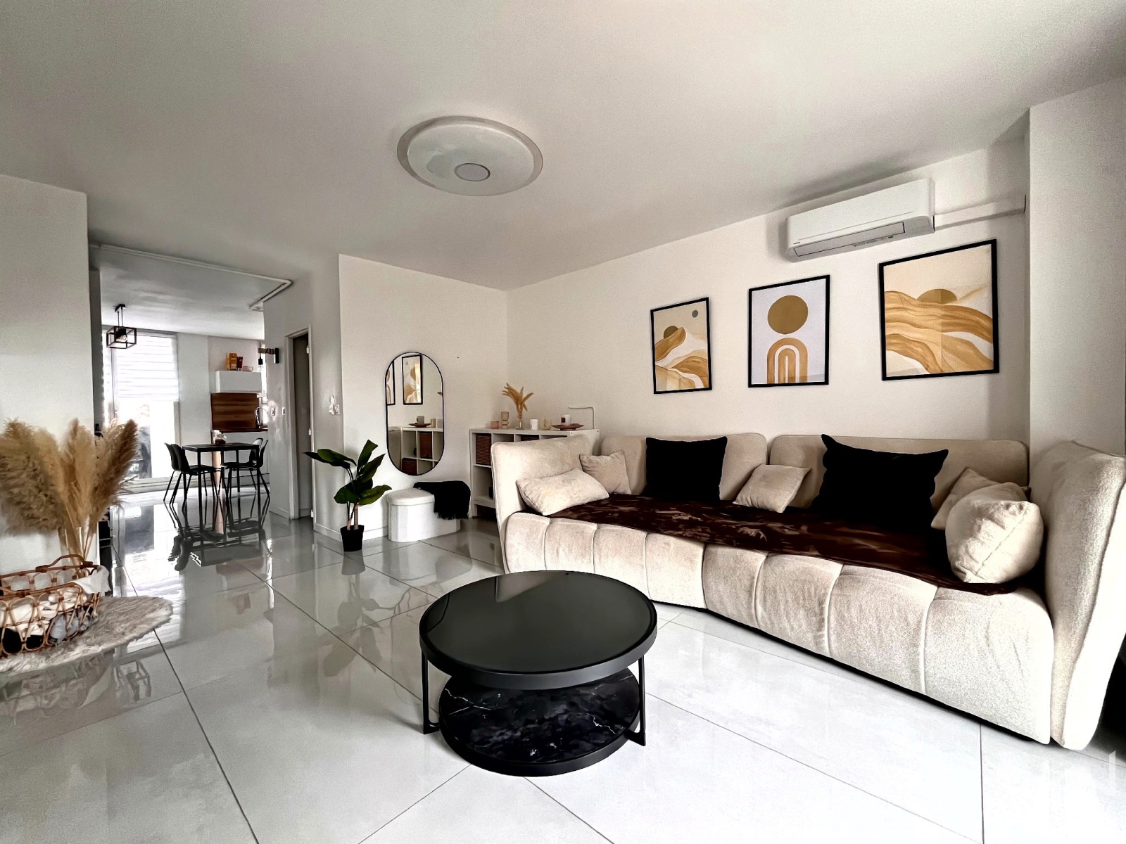 Agencement optimal : vaste séjour baigné de lumière, cuisine fonctionnelle, deux belles chambres et une salle de bain moderne.