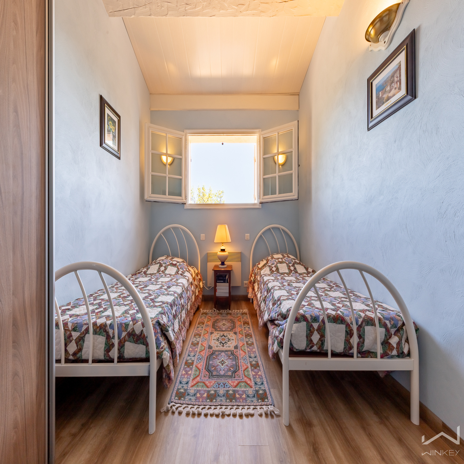 À l’étage, trois chambres, dont une ouvrant sur une superbe terrasse tropézienne pour apprécier la vue, un WC indépendant et une seconde salle de bain, viennent compléter l’espace nuit.