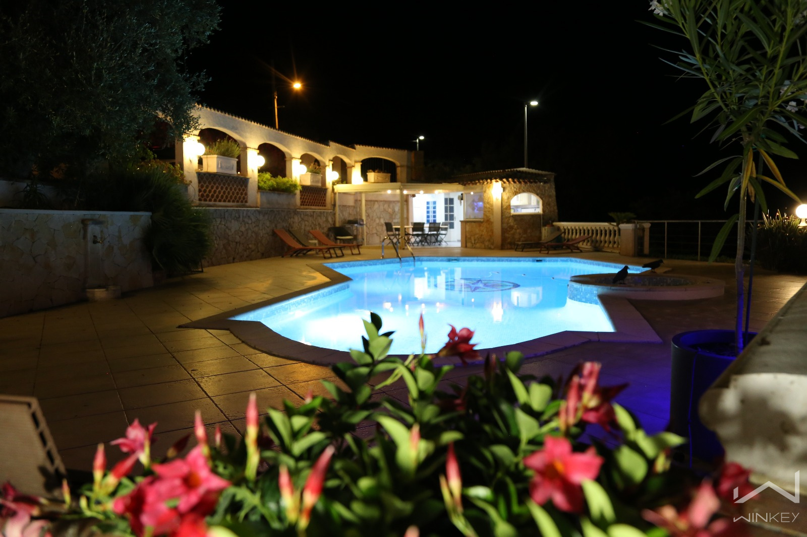 Une piscine avec spa intégré, véritable havre de détente, avec sa plage spacieuse