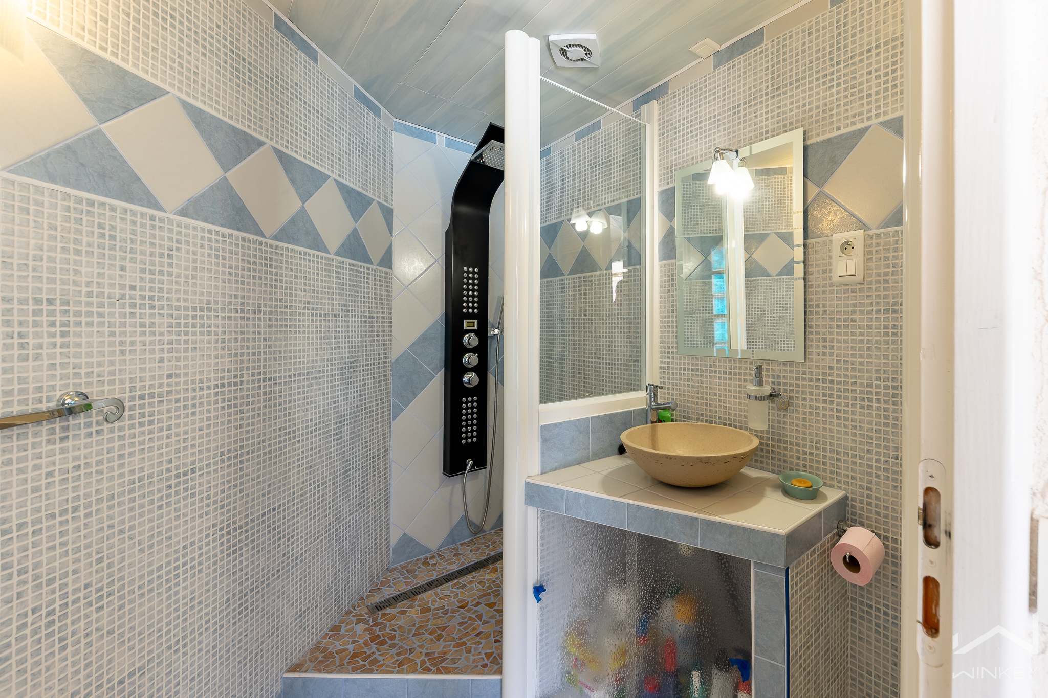 Une salle de bain et des toilettes invités,