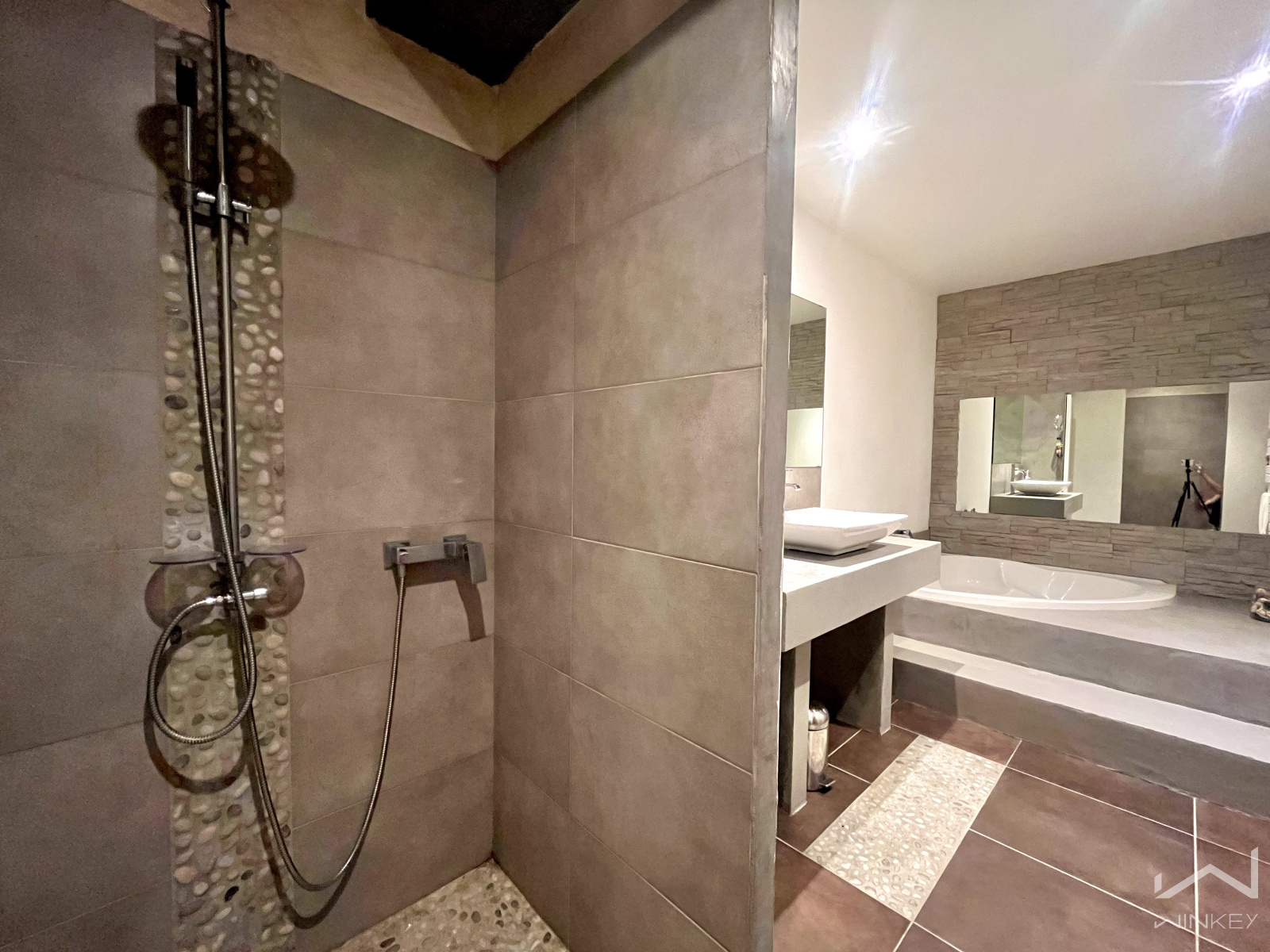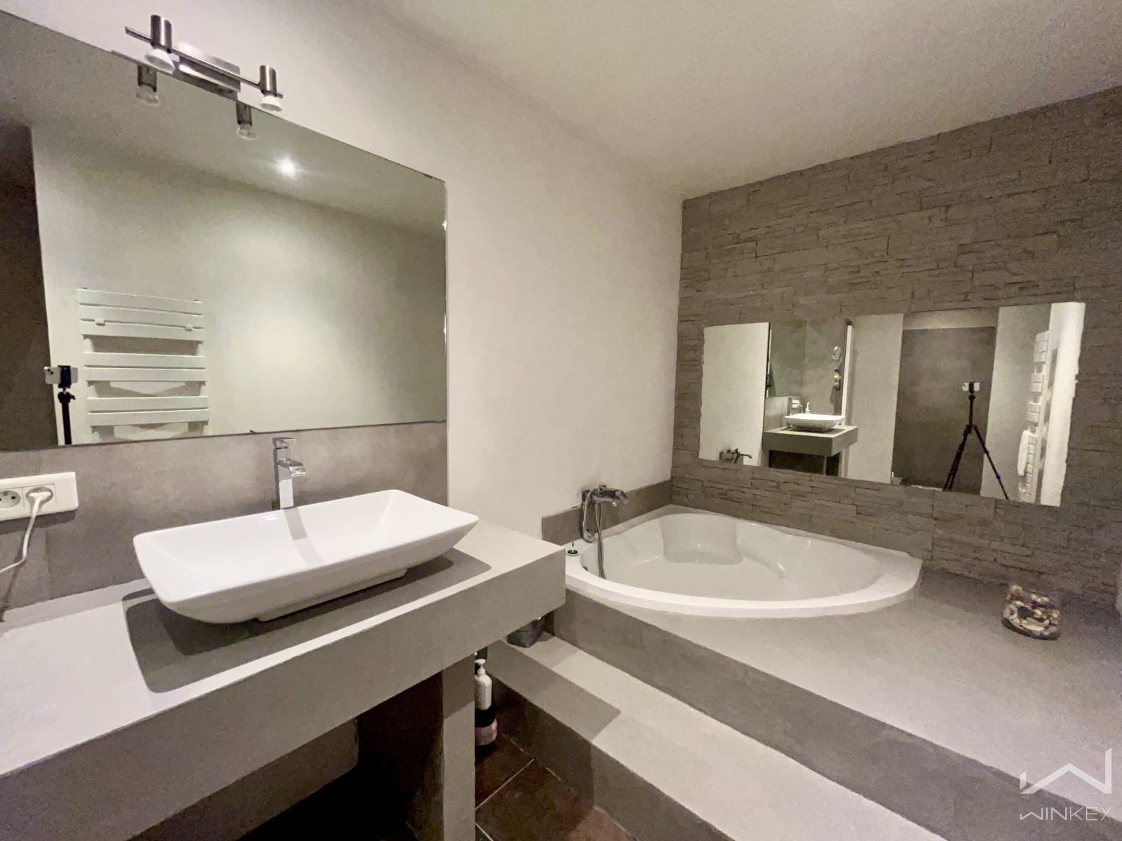 Une salle de bain XXL avec baignoire d’angle et douche à l’italienne