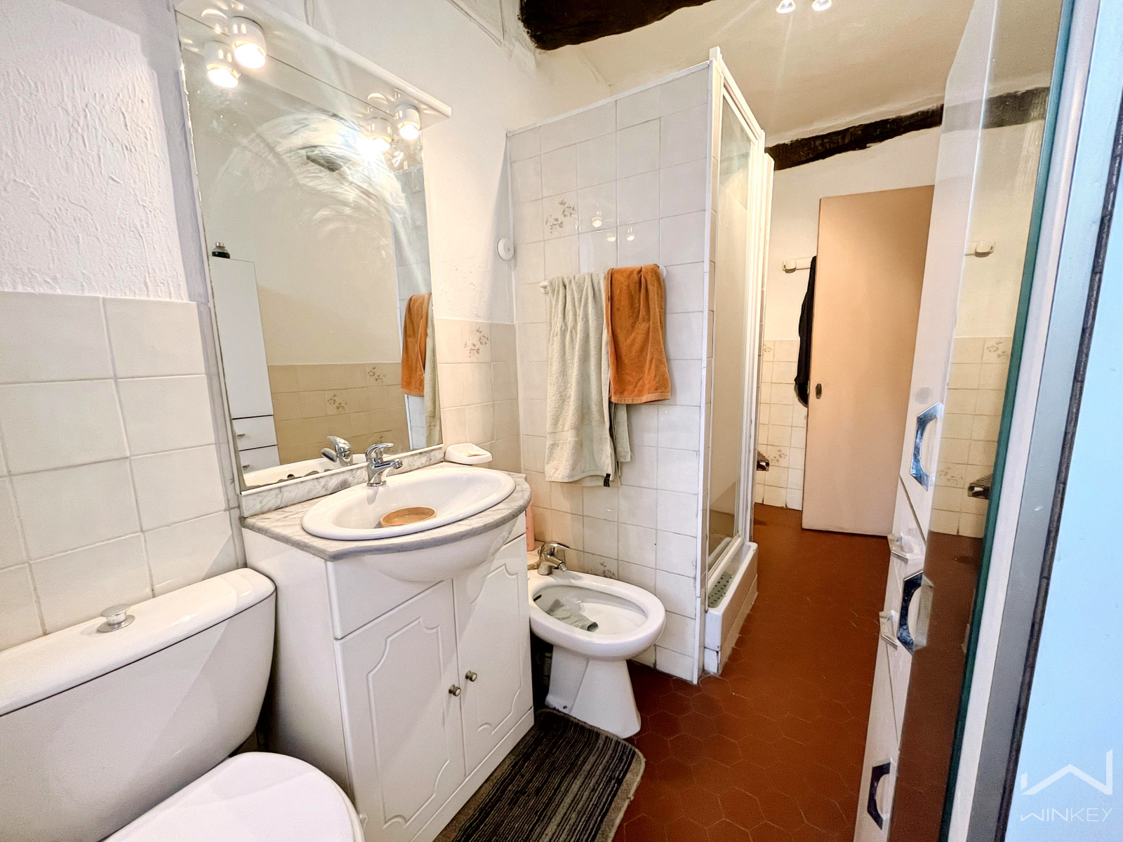 Sur 3 niveaux pour une superficie totale de 73m2 ; la maison nécessite des travaux pour correspondre aux goûts actuels ; nous vous proposons donc des photos avec proposition de Home Staging Virtuel.