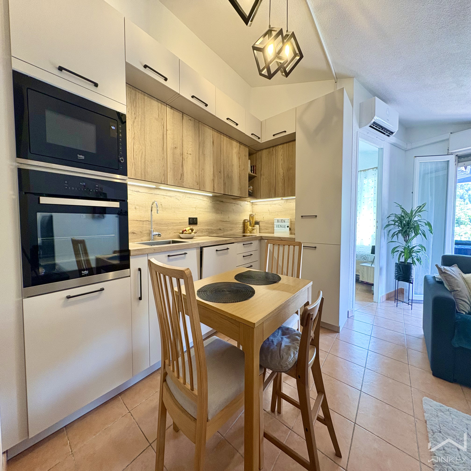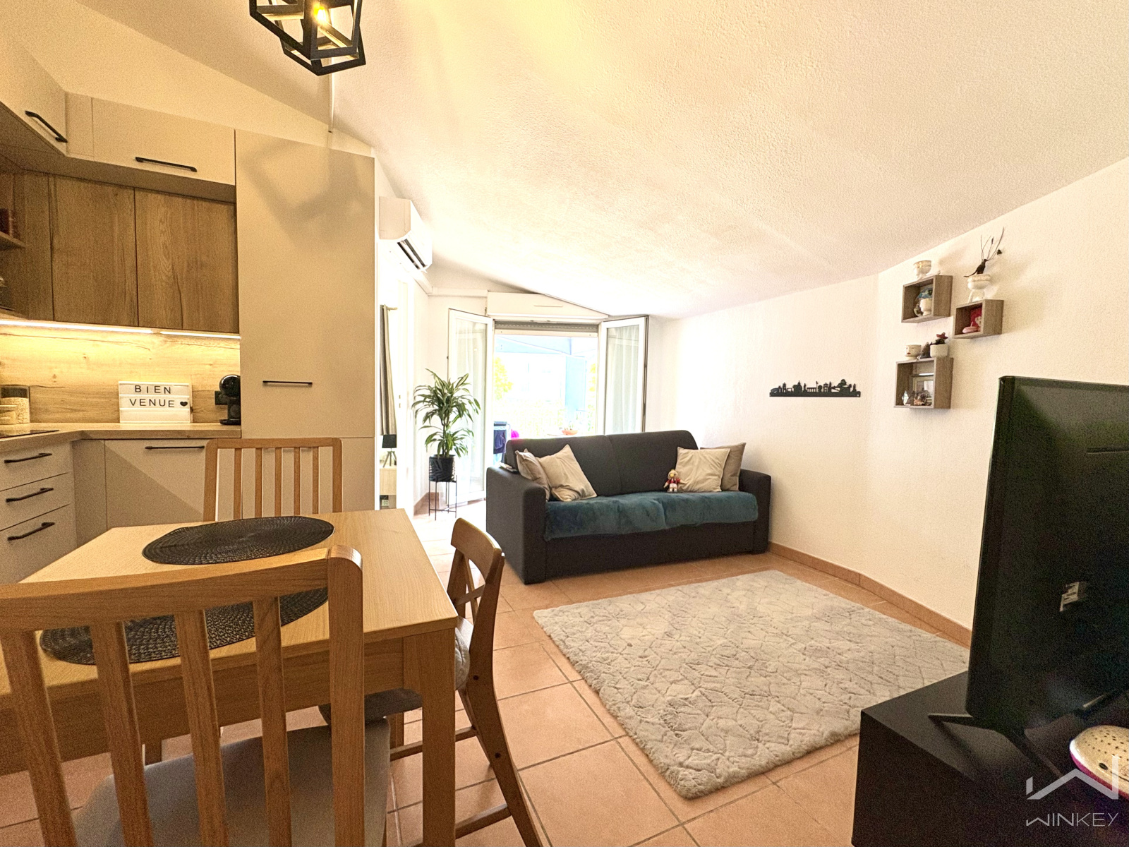 Dès l’entrée, vous apprécierez la luminosité naturelle et l’optimisation des espaces. La cuisine ouverte, moderne et équipée, bénéficie de matériaux de qualité et s’intègre parfaitement au séjour cosy, ouvrant sur un agréable balcon idéal pour profiter des beaux jours.