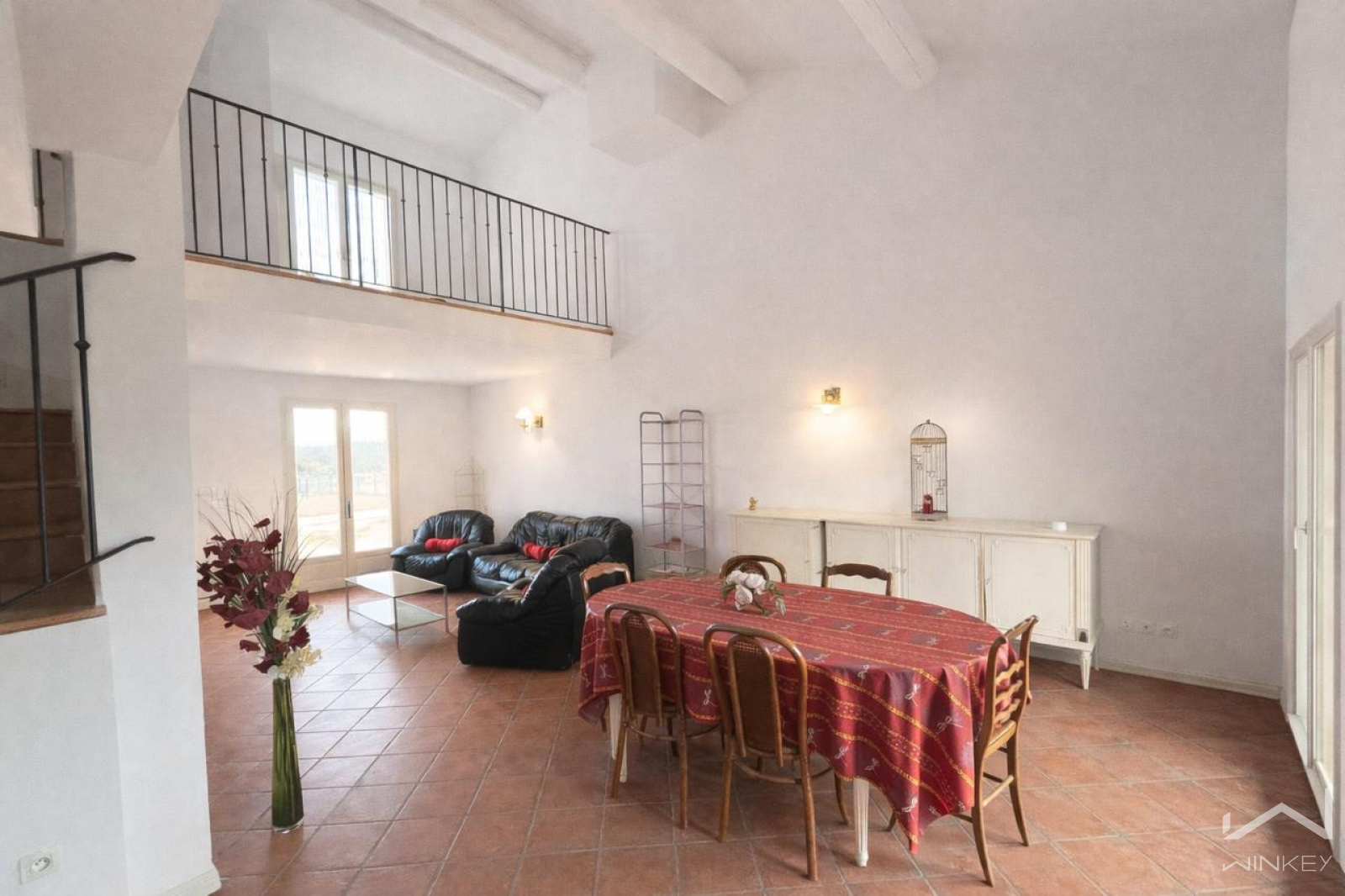 Elle se compose d’une belle pièce de vie avec cuisine aménagée et équipée, de trois chambres, d’une mezzanine, d’une salle d’eau, d’une buanderie, d’un WC indépendant et d’un garage. À l’étage, une agréable terrasse offre une vue dégagée.