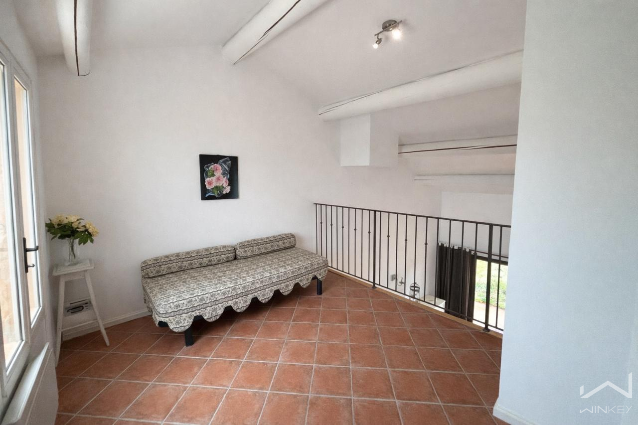 Une mezzanine ouverte sur le séjour vient compléter l’ensemble, idéale pour aménager un coin bureau ou un espace détente.