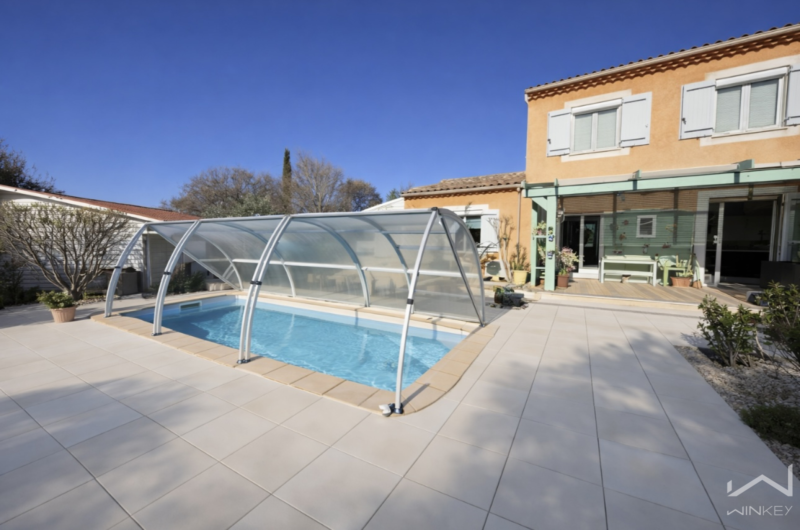 Prestations : Classe énergétique C, pompe à chaleur, piscine au chlore, moustiquaires, volets roulants électriques, adoucisseur d'eau, portail électrique, domotique, double véranda, eau du rhône ect...