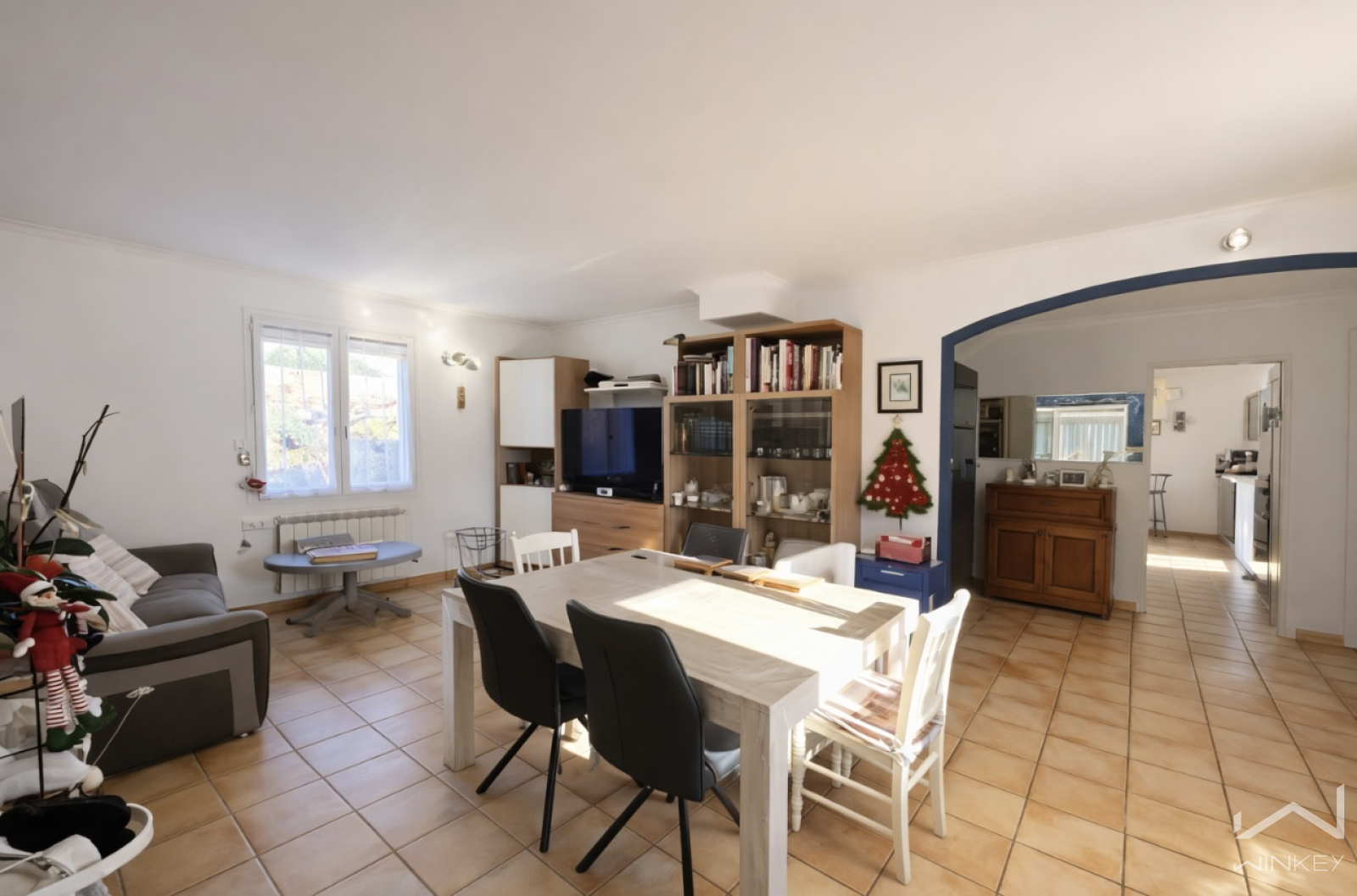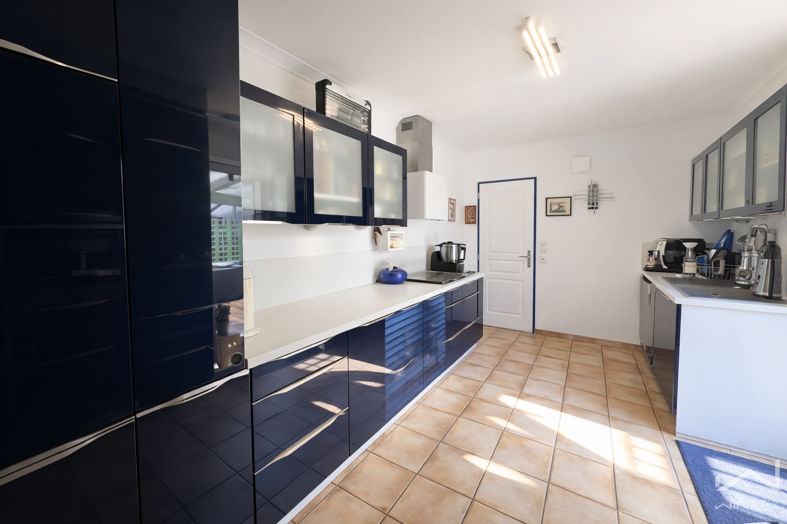 La cuisine équipée donne accès à une jolie terrasse et à l'espace piscine.
