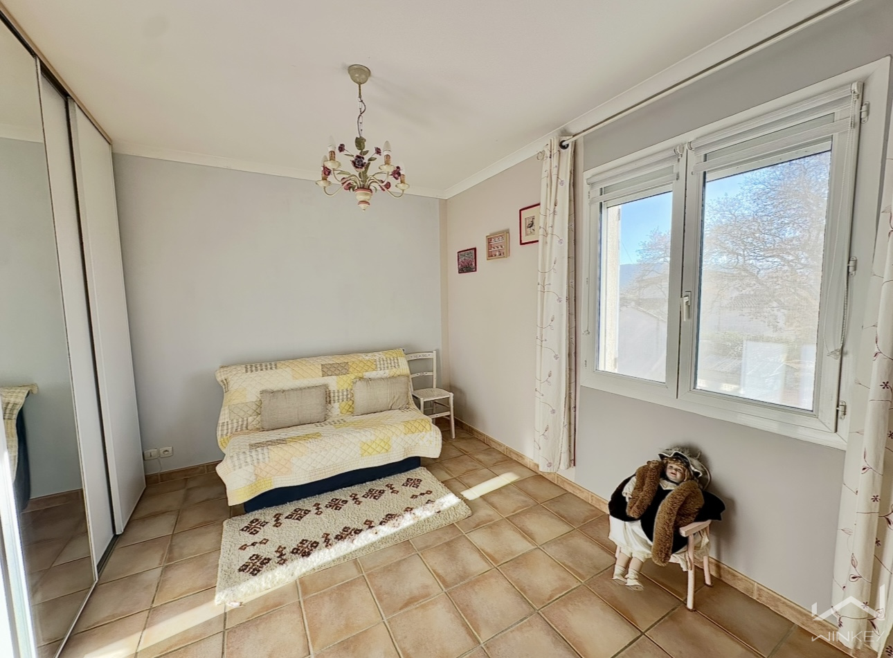 La maison se compose de 4 chambres dont 1 en rdc, de 2 salles de douche ainsi que d' une belle pièce de vie lumineuse ouvrant sur une véranda d'env 20m2;