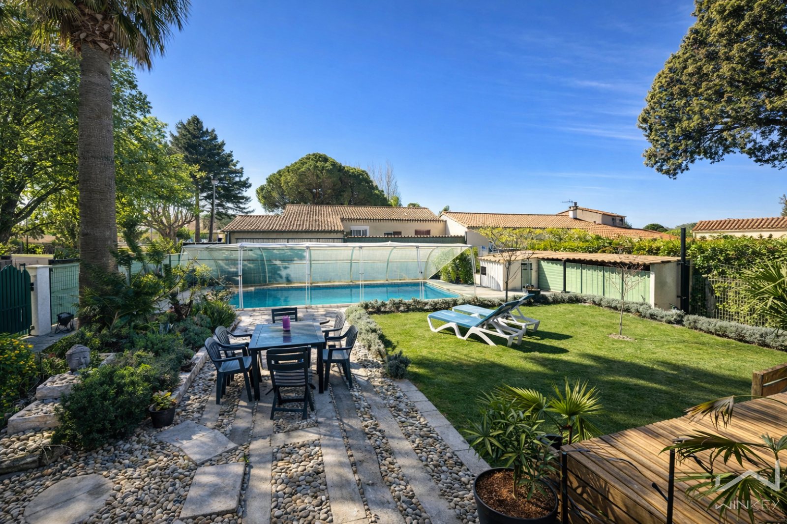 Vous découvrirez un magnifique extérieur, parfait pour les beaux jours à venir, avec terrasse, barbecue, et piscine .