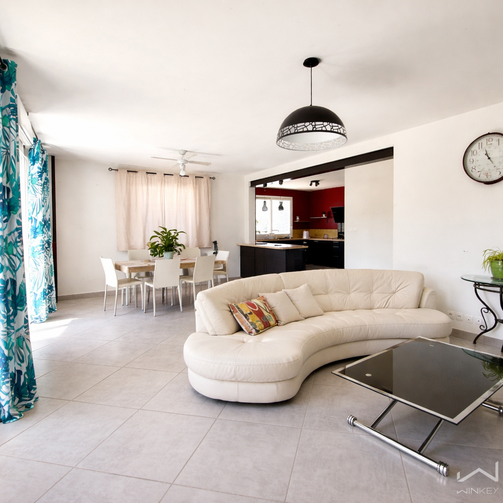 Dès l’entrée, vous serez séduit par une vaste pièce de vie de plus de 50 m², baignée de lumière, intégrant un espace cuisine et une buanderie, pensée pour allier confort et fonctionnalité au quotidien. L’ensemble est particulièrement agréable à vivre, avec des volumes généreux et une circulation fluide.
