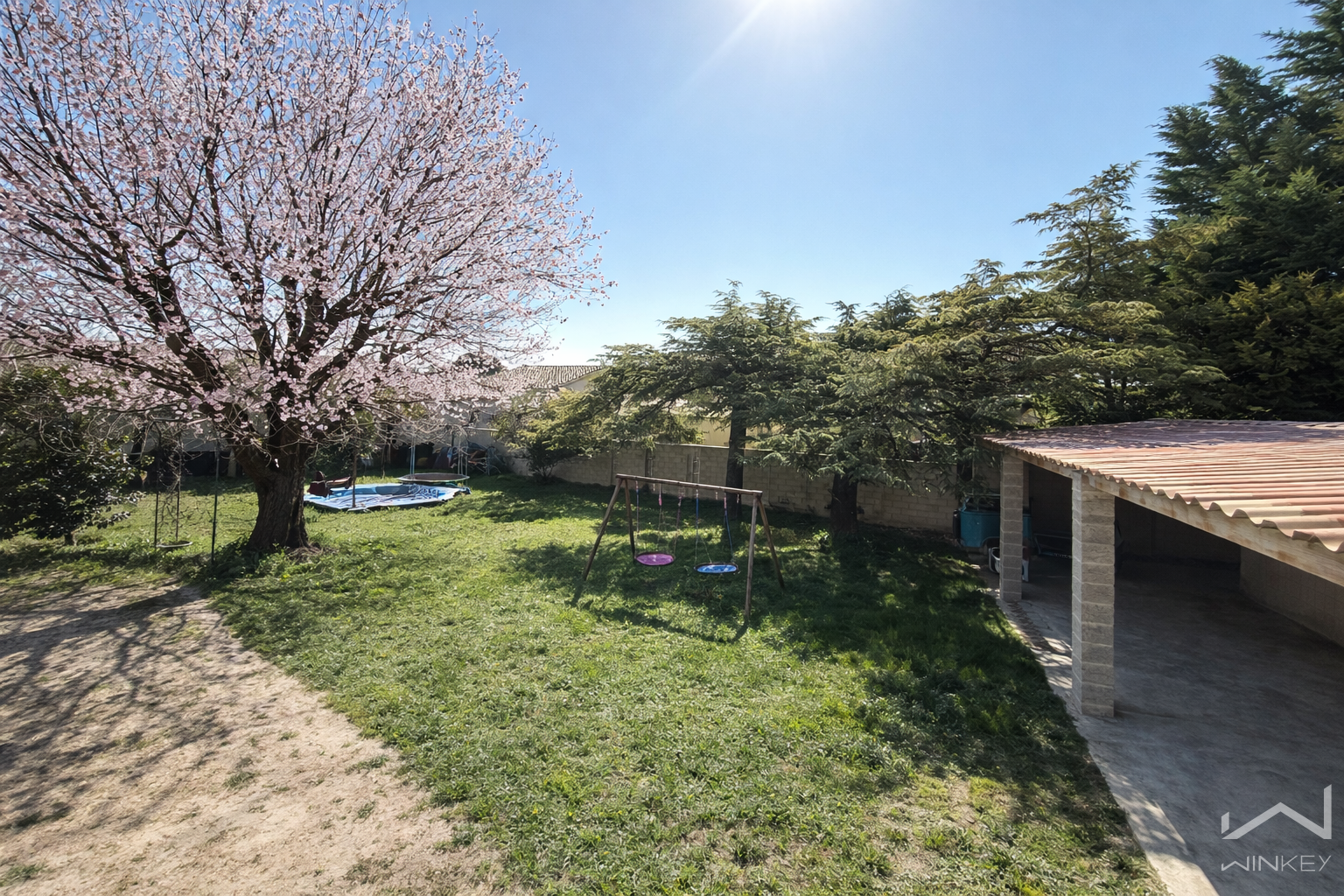 À l’extérieur, le terrain de 1000 m² permet de profiter pleinement des beaux jours, tout en offrant des espaces pratiques avec un garage de 38 m² et un abri voiture de 60 m².