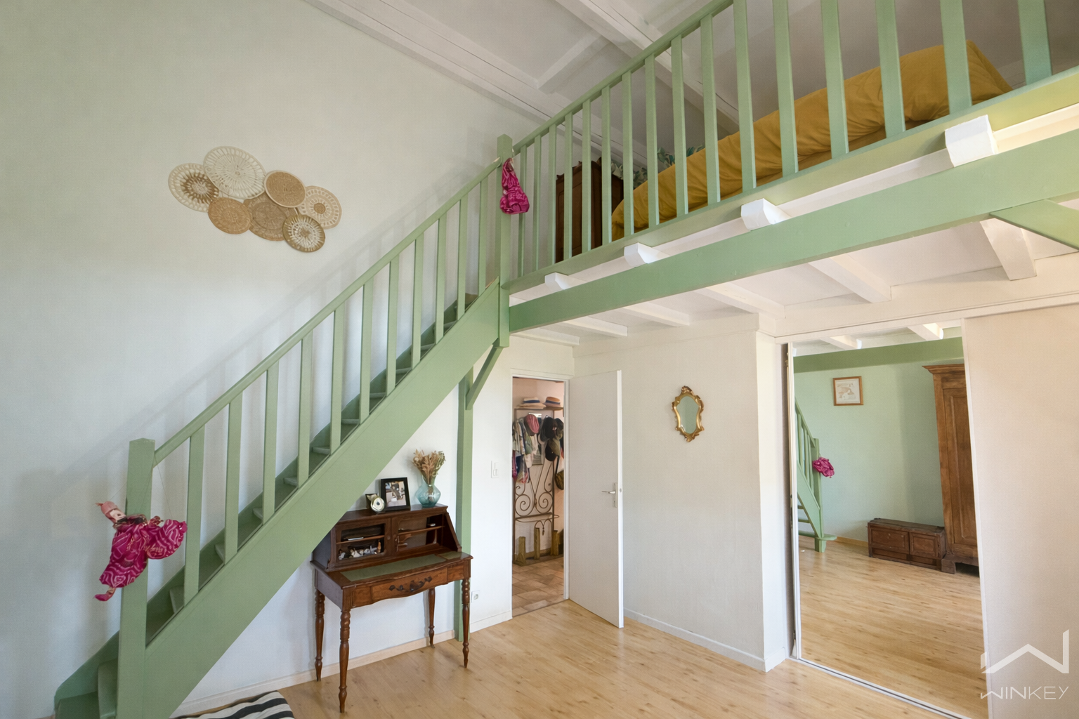 À l’étage : séjour lumineux avec insert, cuisine indépendante aménagée et équipée, véranda panoramique, trois chambres (dont une avec mezzanine et une avec balcon privatif).