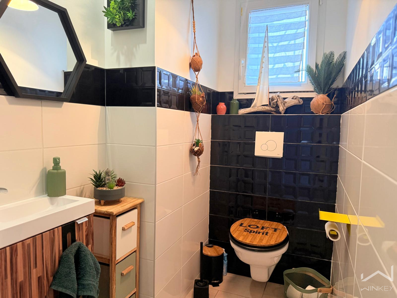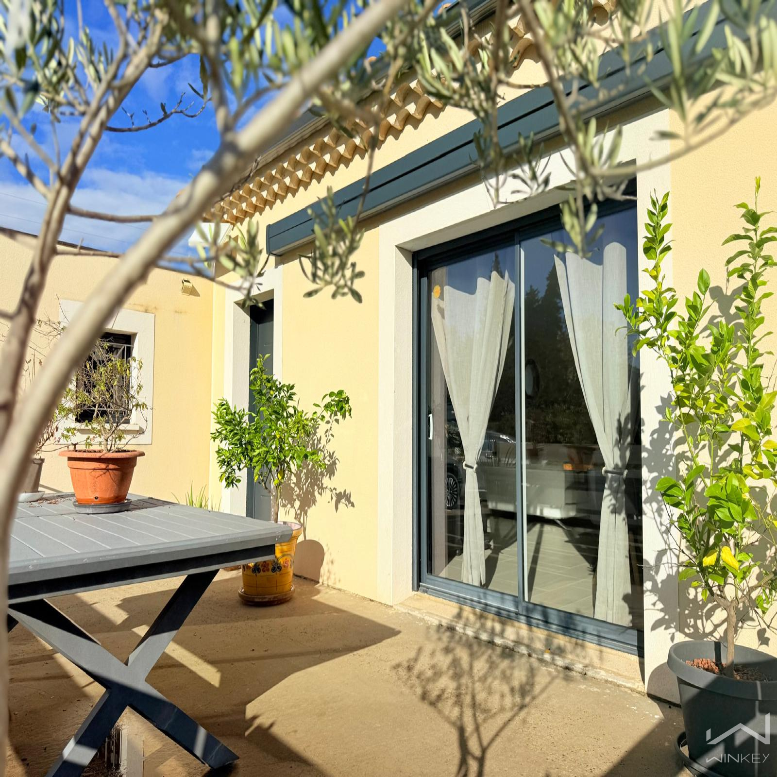 Performante énergétiquement, elle bénéficie d’un DPE classé B, d’un système de chauffage par climatisation réversible et poêle à granulés, de volets roulants électriques domotisés, de moustiquaires, ainsi que d’un ballon thermodynamique.