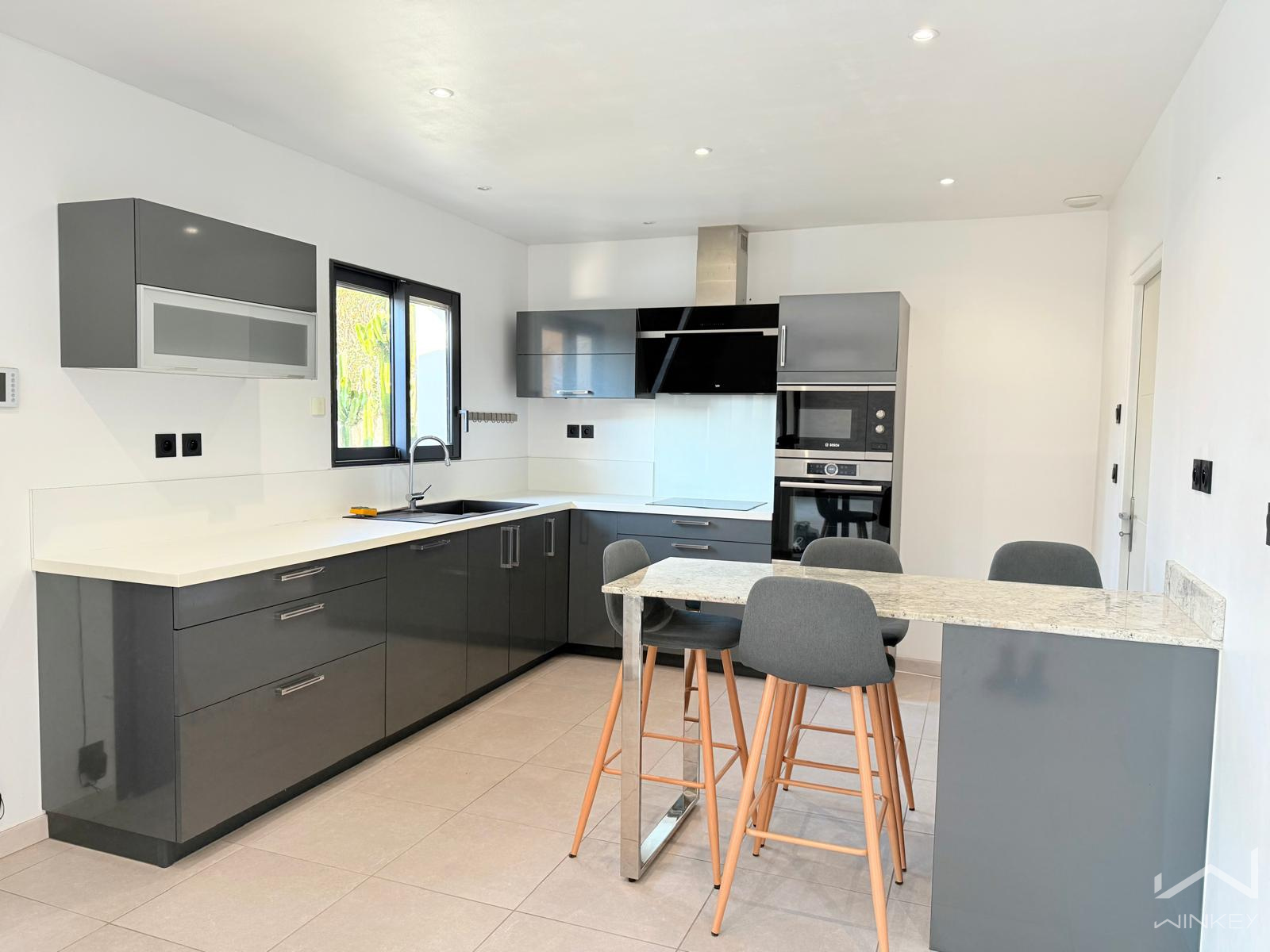 Une belle cuisine ouverte, aménagée et entièrement équipée, complète parfaitement cet espace convivial.