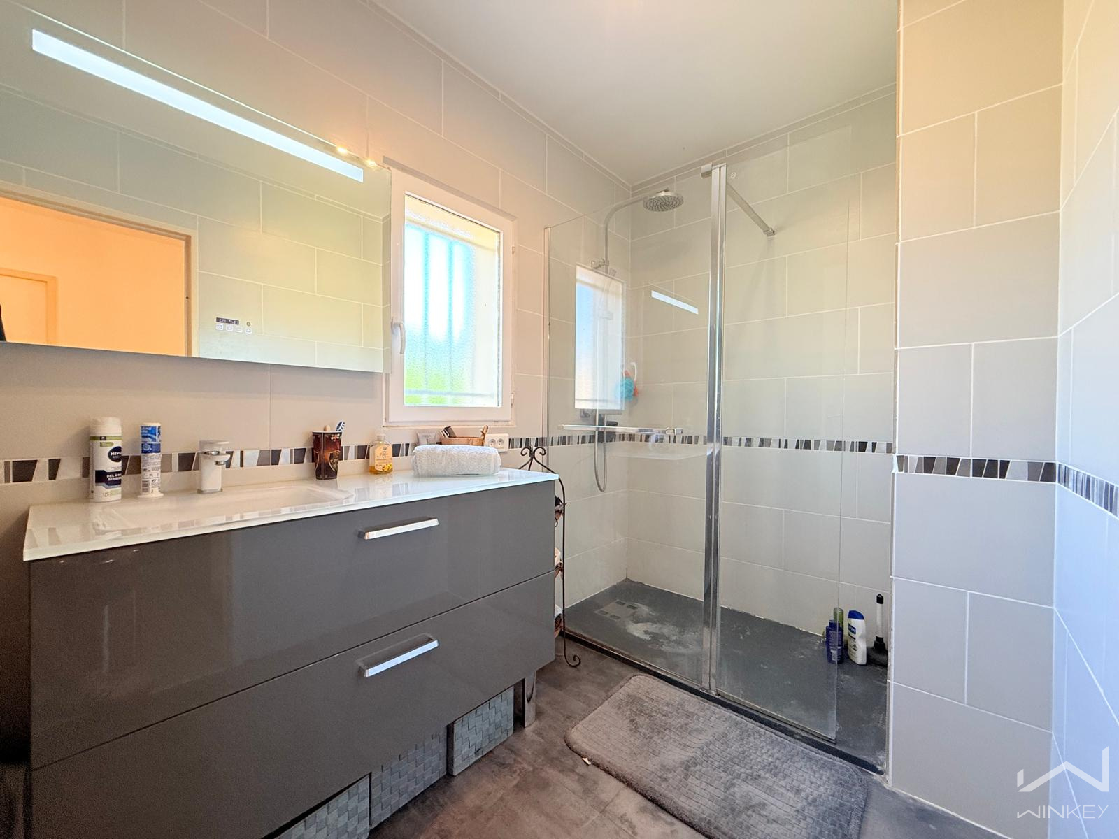 Construite en 1984 et soigneusement entretenue, cette maison a bénéficié d’améliorations notables : ravalement de façade réalisé en 2021, menuiseries PVC double vitrage, volets roulants électriques. Côté confort, le chauffage est assuré par des radiateurs électriques et une climatisation réversible dans le séjour.