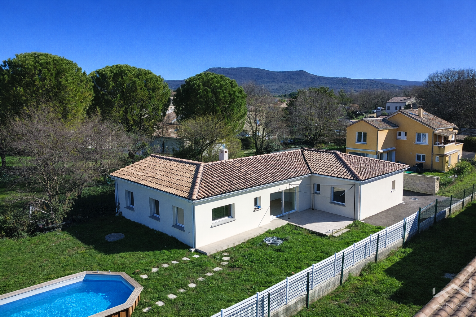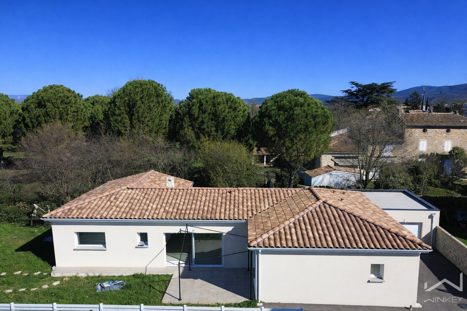 Située hors lotissement, dans un secteur calme et recherché, cette belle villa de plain-pied construite en 2022 est bâtie sur une parcelle de 919 m².