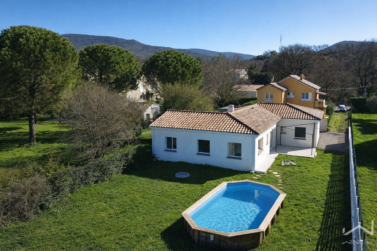 Aucun travaux à prévoir à l’intérieur – les matériaux sont de qualité et la maison est très bien entretenue. À l’extérieur, quelques aménagements restent à prévoir selon vos envies. Une piscine hors-sol est déjà installée.