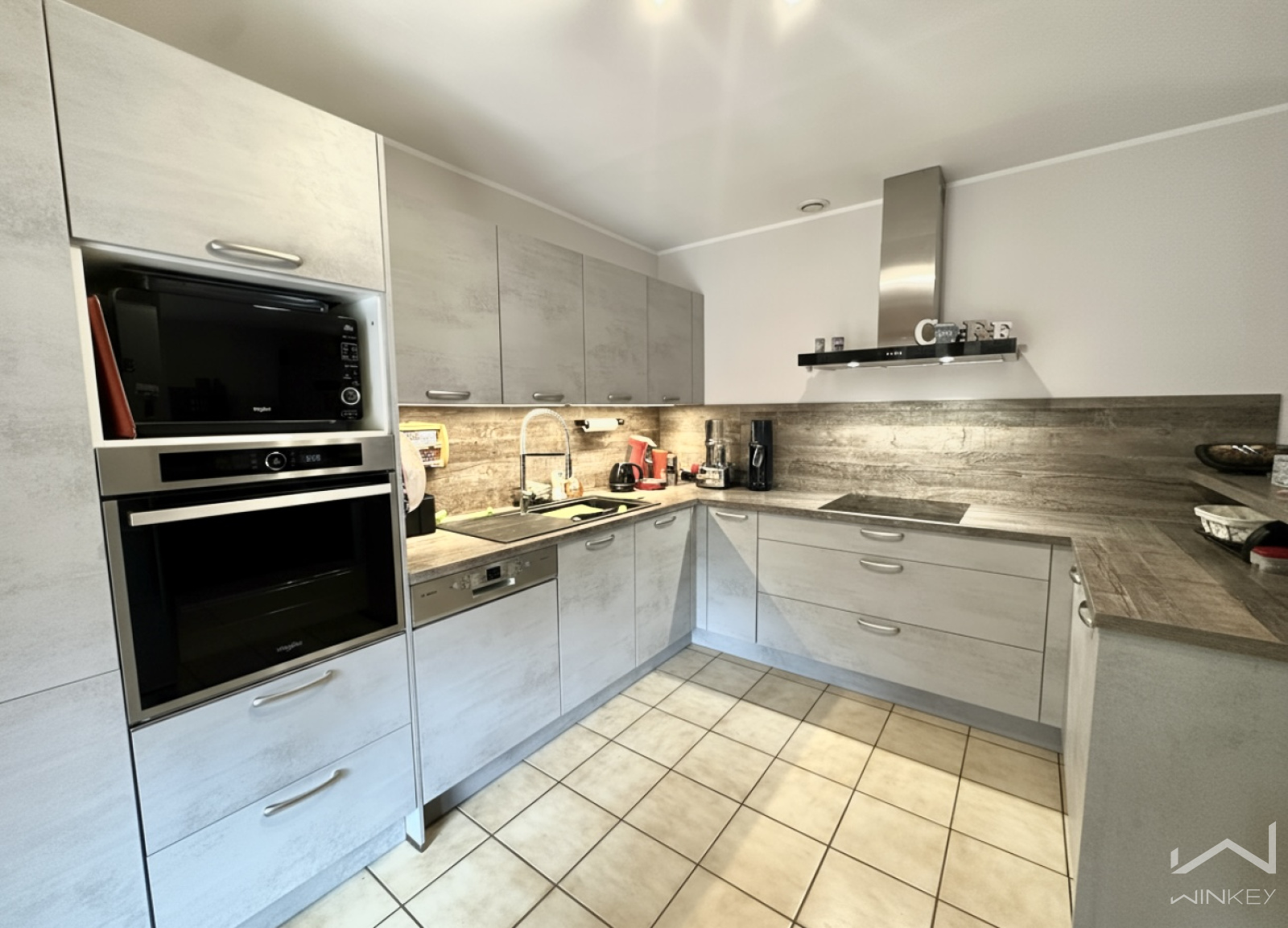 A l'extérieur, vous serez séduits par la grande piscine 9/4, la terrasse avec pergola, idéale pour vos moments de détente, ainsi que par le garage d'env 30 m2 avec fosse et cave, offrant de nombreuses possibilitées de rangement.