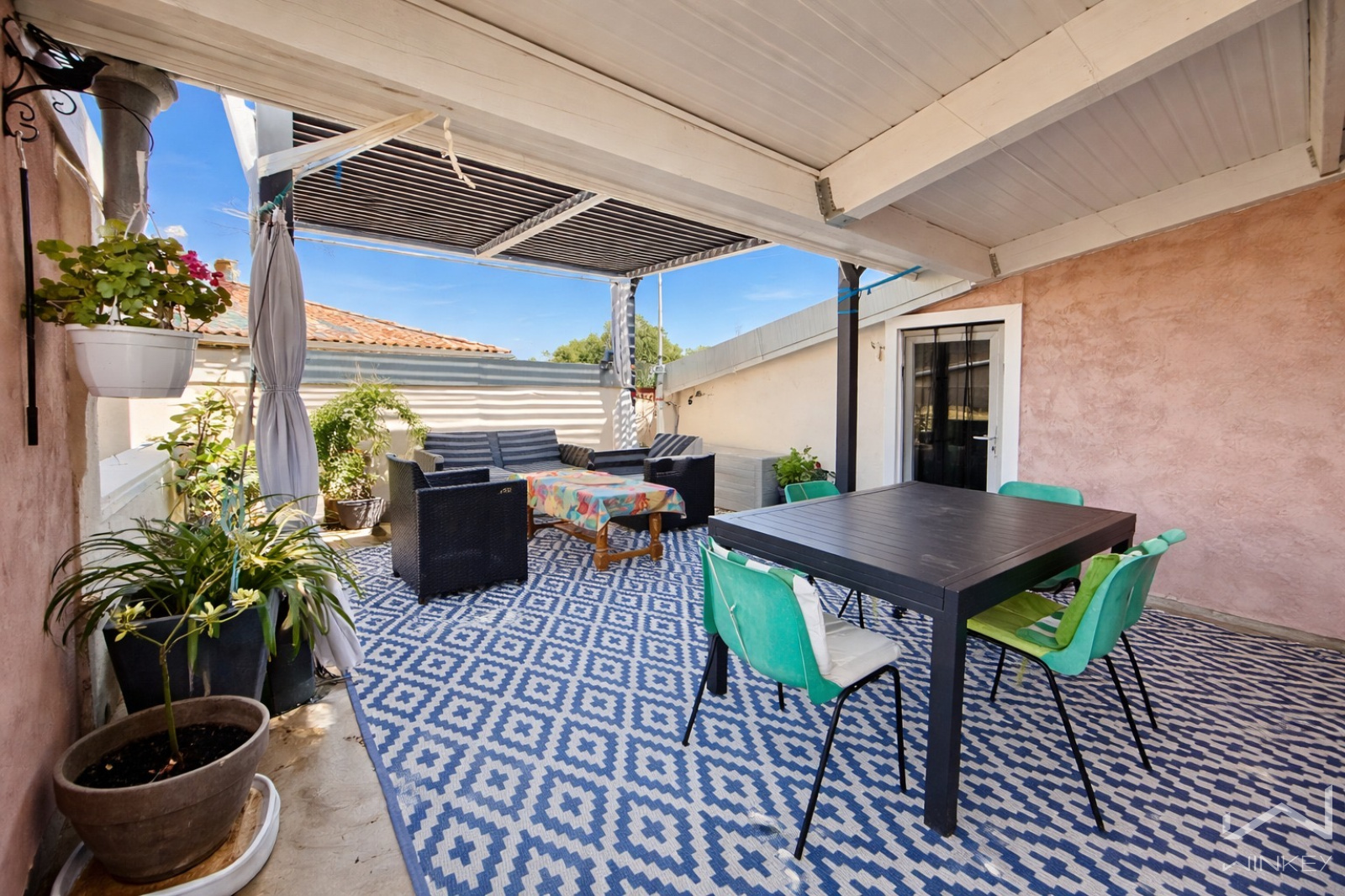 Cerise sur le toit : une terrasse tropézienne de 35 m², parfaite pour profiter des beaux jours, prolongée par une cuisine d’été équipée (évier eau chaude/froide, meubles, frigo et lave-vaisselle), une partie couverte et une partie avec pergola pour savourer l’extérieur en toute saison.