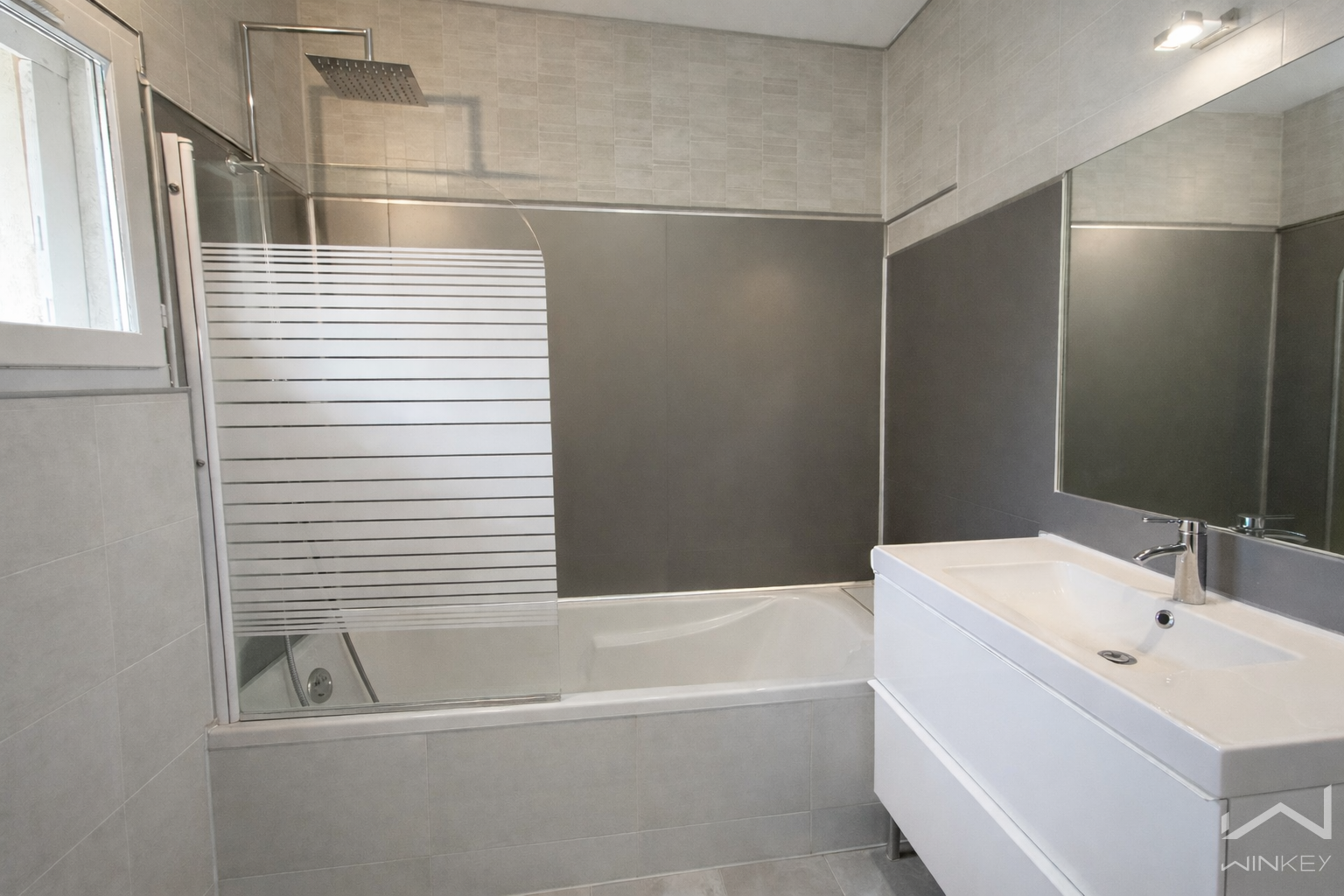 Une grande salle d’eau avec douche à l’italienne,