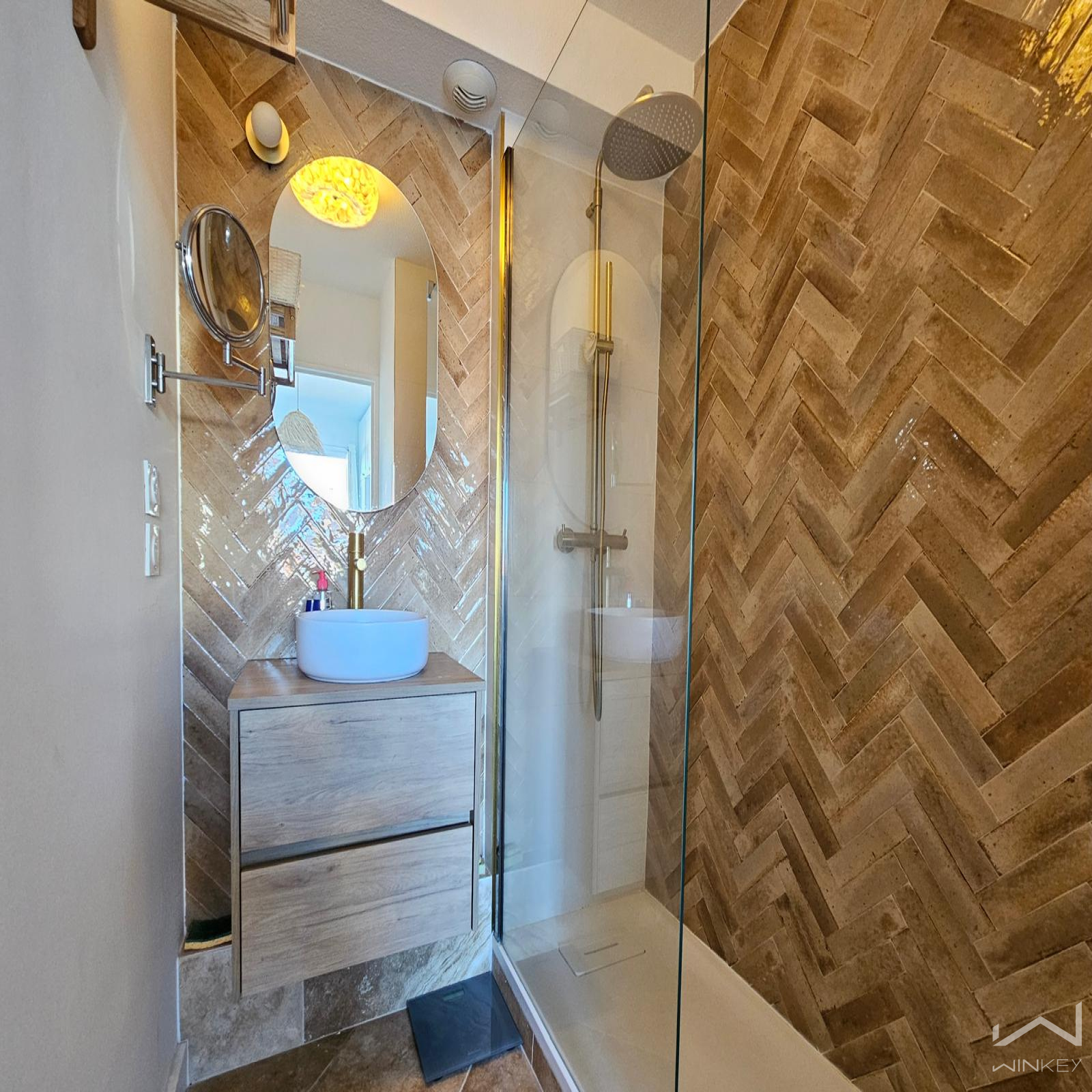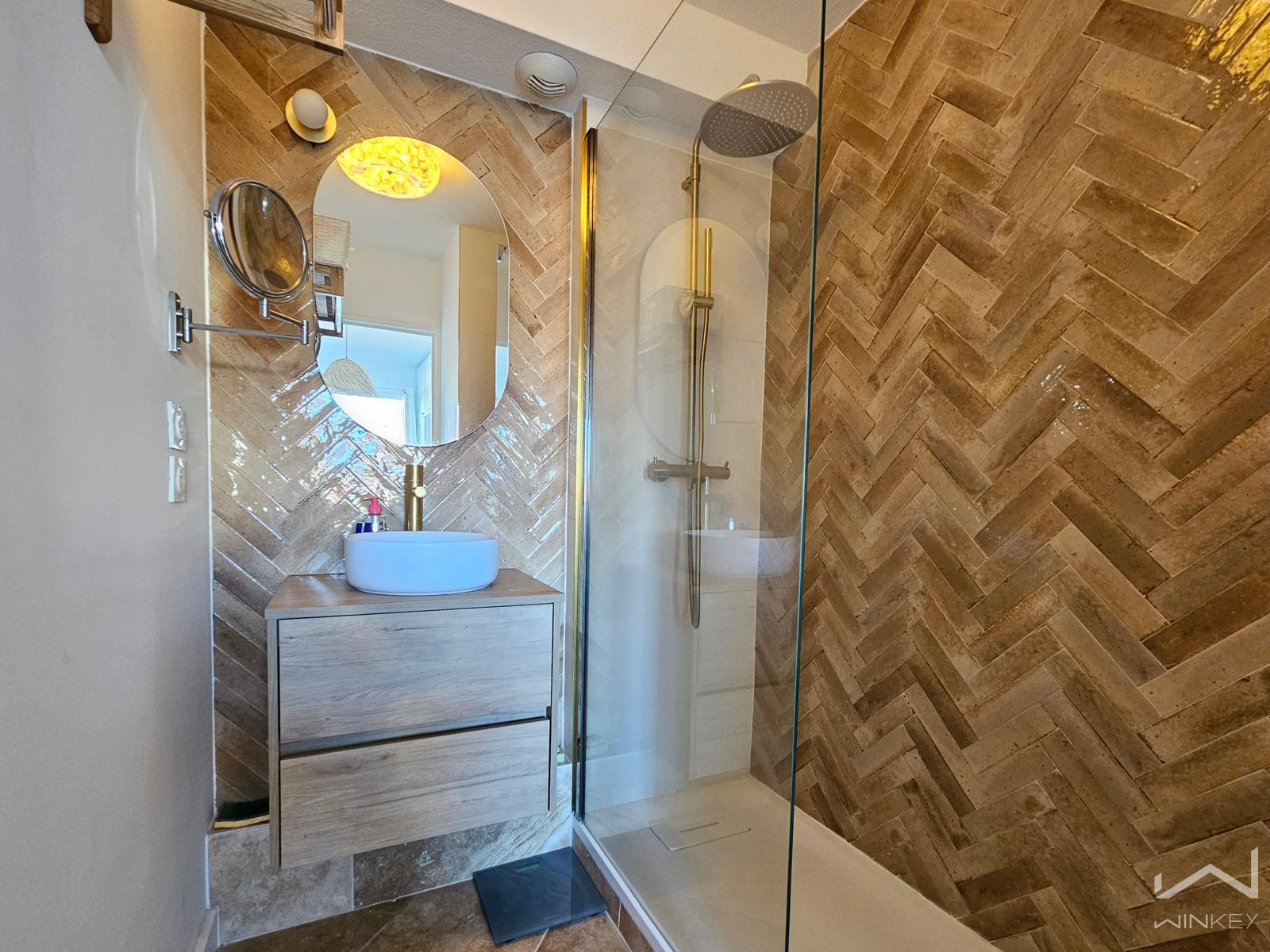 Il se compose d’une entrée avec rangements, d’une cuisine ouverte sur le séjour, d’une chambre confortable, d’une salle d’eau, de WC séparés.